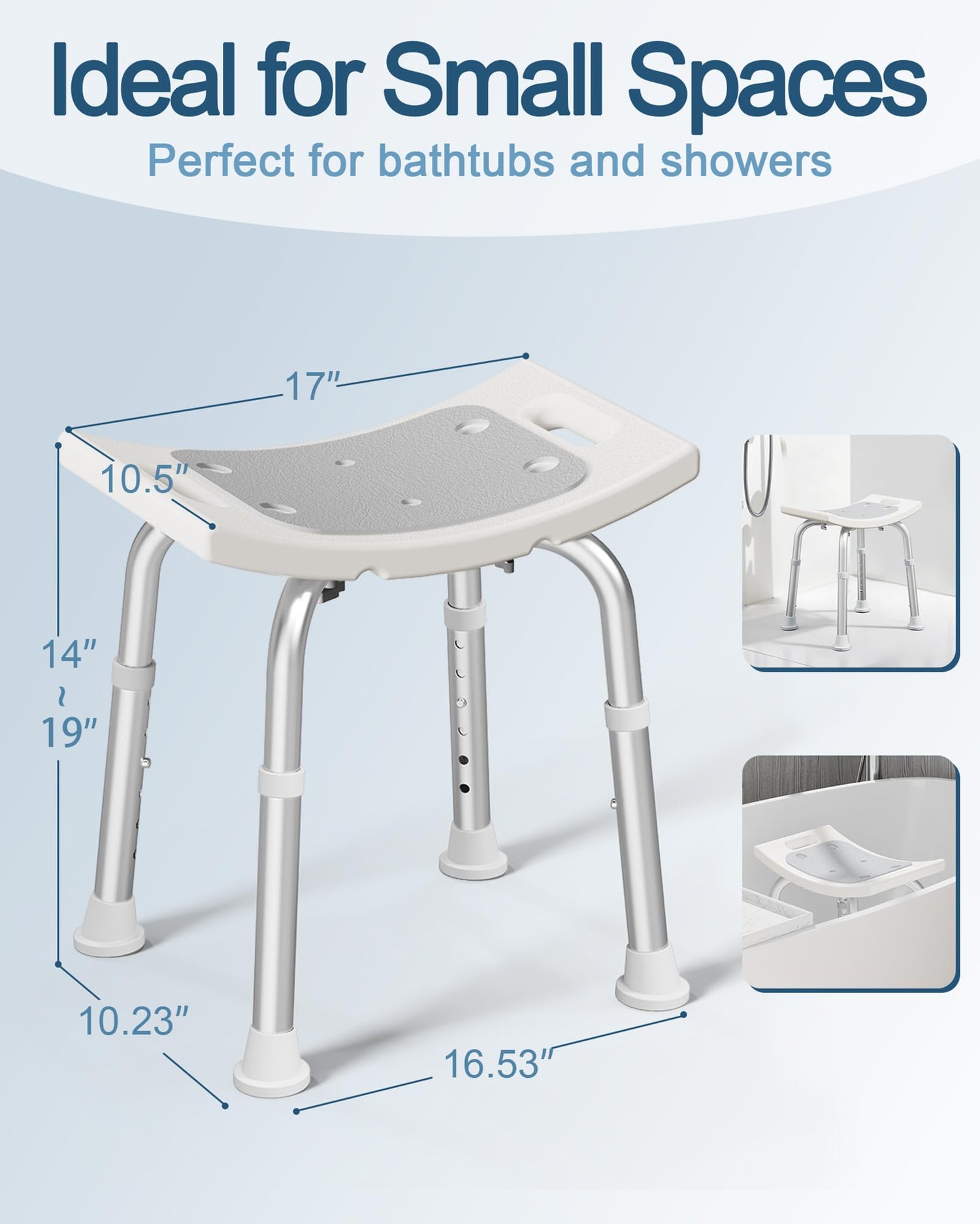 - 【Tool-Free Assembly】Lightweight and portable design makes it easily lift in daily use. It comes with a step-by-step manual ensuring hassle-free setup of your new shower chair