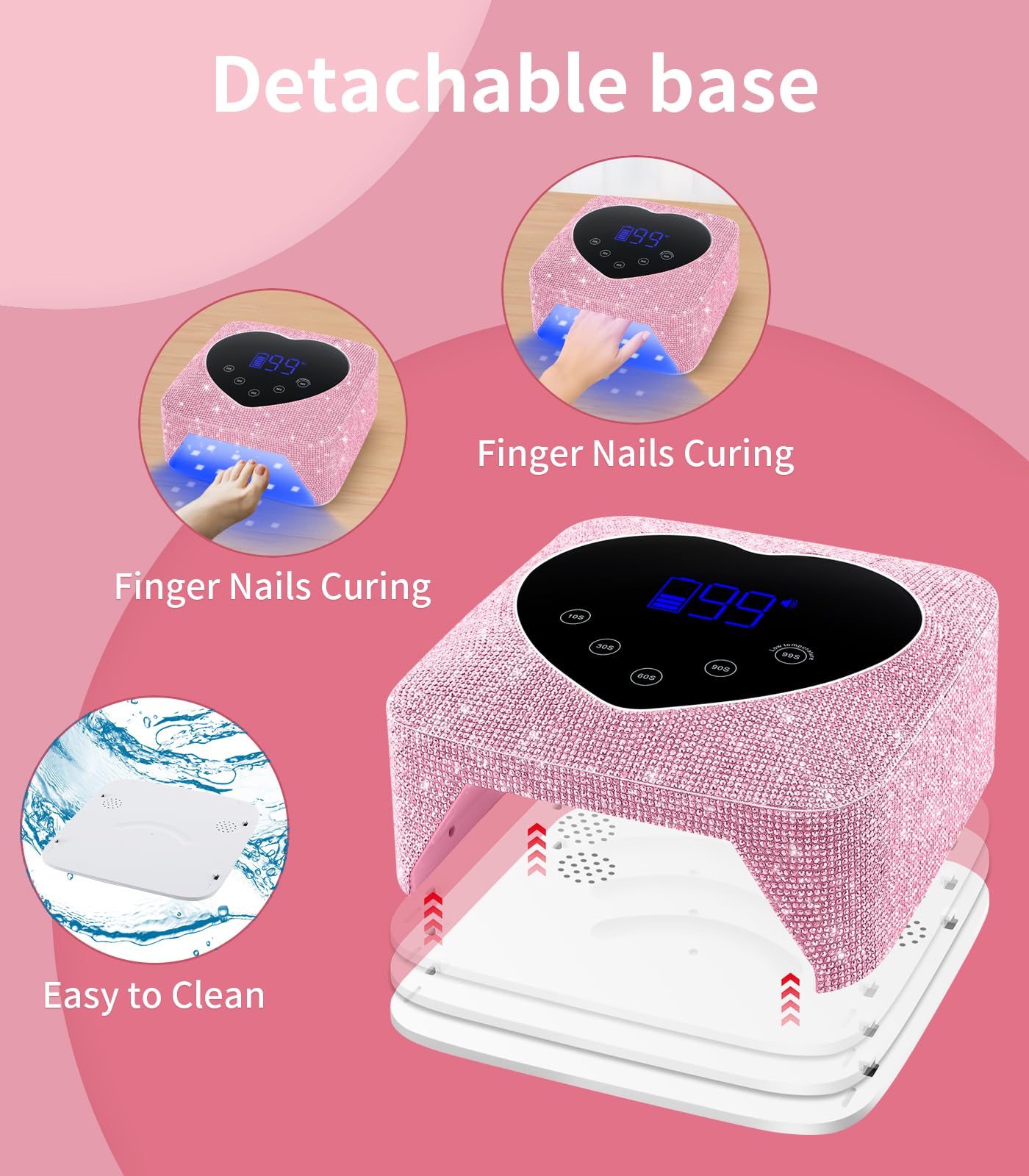 - 【Smart Auto Infrared Sensor】Our diamond nail lamp features intelligent infrared sensor function,hand in, light on, hand out, light off,this fully automated curing process frees up your hands and offers you a new salon nail experience. With 30 lamp beads and a power of 72W, our led nail light for gel nails cures your nails in half the time of other lamps, quickly and evenly drying them. This saves you time and the built-in temperature protection design safeguards your hands from burns.