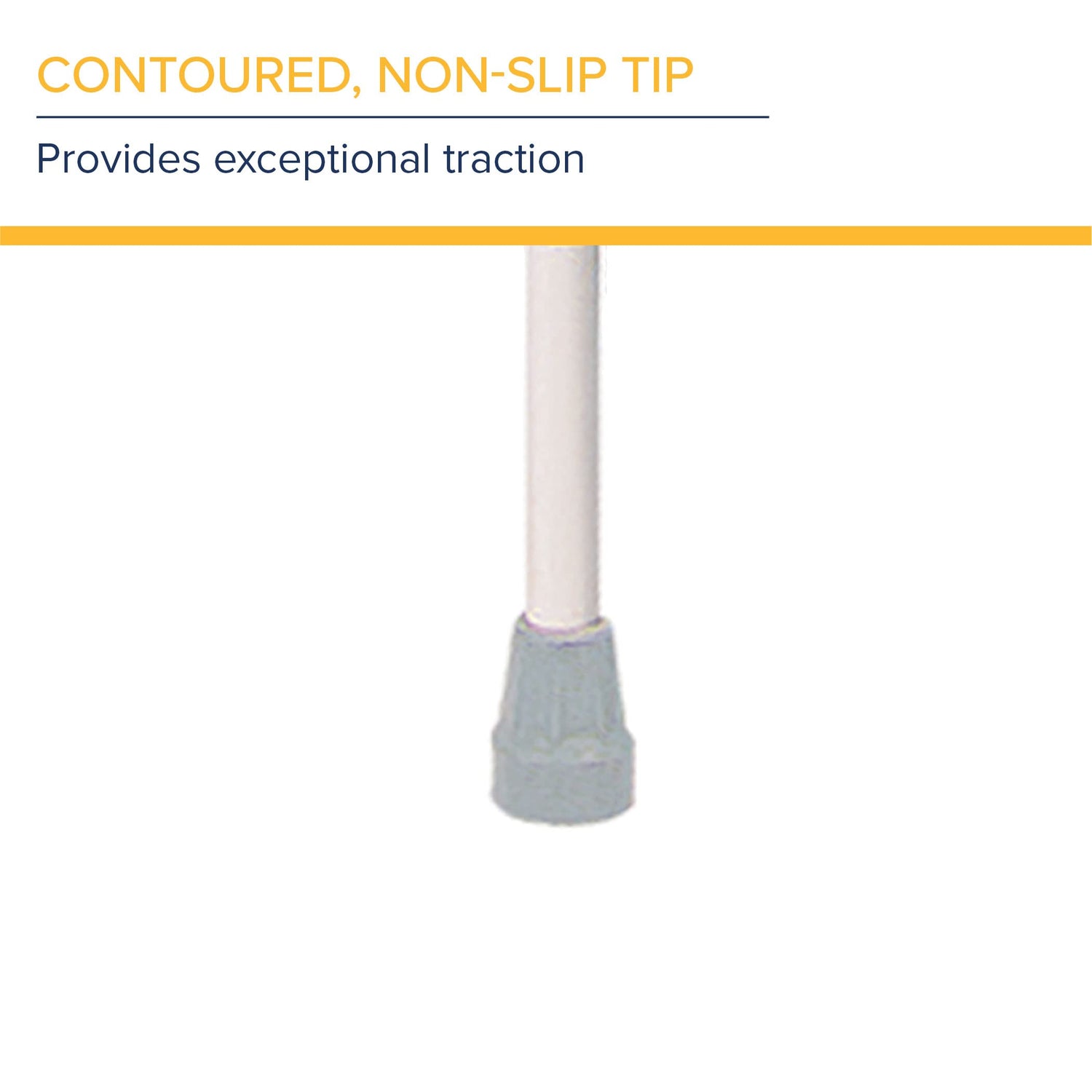 - Quality Construction: Contoured crutch tips feature a curved stair deflector at their tip and provide exceptional traction, while a built-in metal ring protects against premature wear