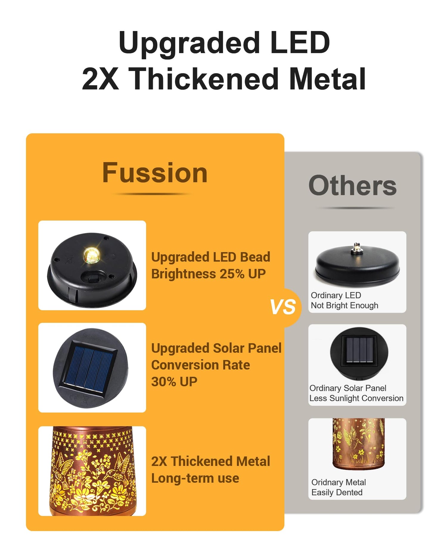 - 【Enhanced Brightness & 2X Thickened Metal】- Enjoy brighter and more vivid illumination with upgraded LED bead that provide 25% more brightness than traditional models. The delicate hollow out metal veneer ensures the Hummingbird pattern is displayed with stunning clarity. Made from 2X thickened metal, these solar lanterns for porch are built to last, offering exceptional durability and resistance to bending or denting. Additionally, the solar panel power efficiency has been improved by 30%, improve energy conversion for longer lighting time.