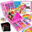 - 【Gift Box Packed, Easy to Carry and Use】 The art sets case includes double sided pop-up easel inside, making it easy for your young artist to color anywhere creativity strikes, or share with friends or family. Convenient portable carrying case folds up so it can be used at home or on the road. Great for traveling and makes a great gift for kids, teens, girls, boys ages 6 7 8 9 10 11 12 years old.