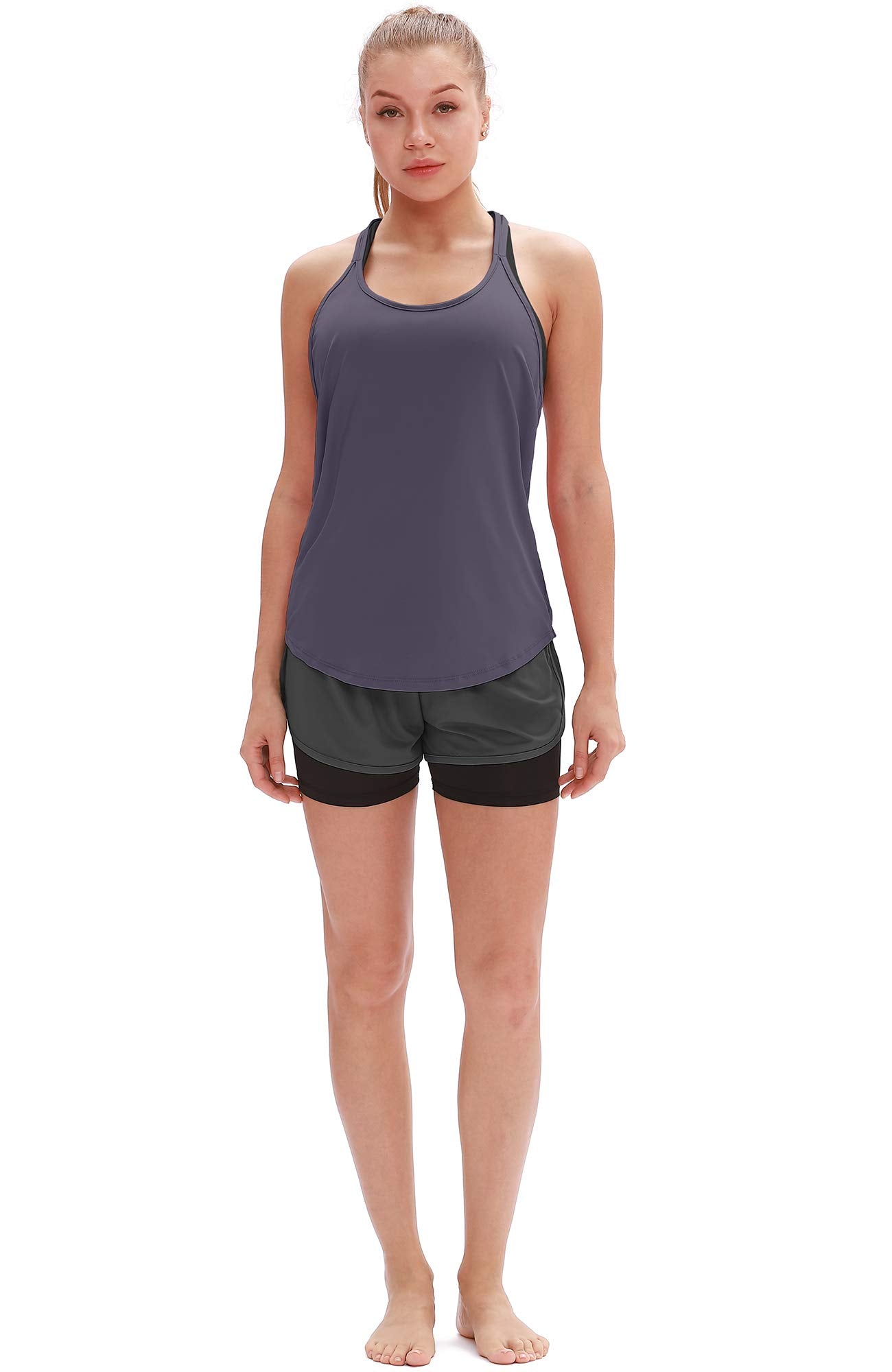 icyzone Workout Tank Tops for Women - Athletic Yoga Tops, T-Back Running Tank Top(Pack of 2) (L, Purple/Pistachio Green) is backordered and will ship as soon as it is back in stock.