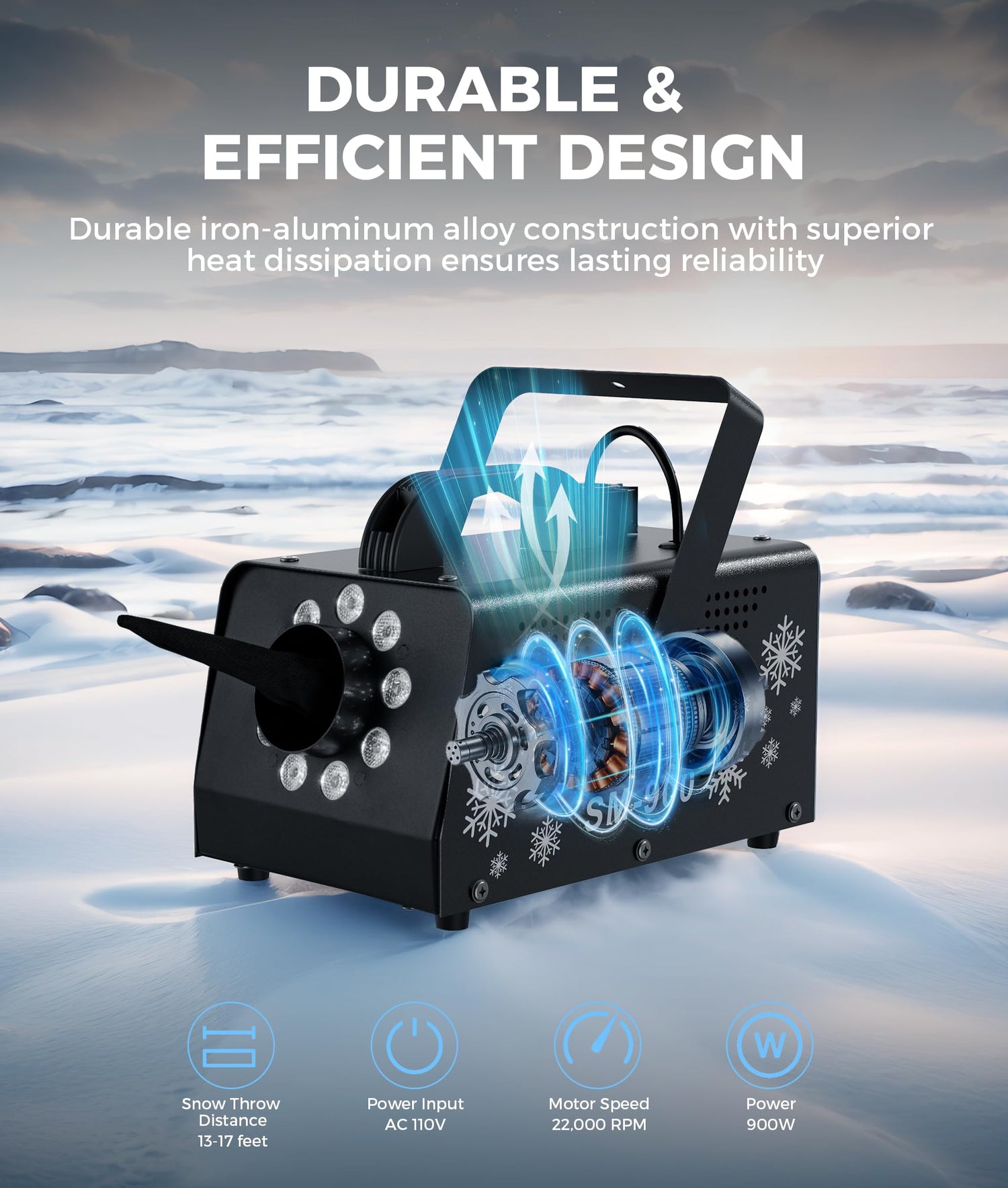 IMONE 900W Snow Machine with 9 Lights Christmas Gift,High Output Fake Snow Machine with Remote,Snow Machine Indoor,Outdoor Snow Making Machine,Snow Maker Machine,Snowflake Machine Parade,Party