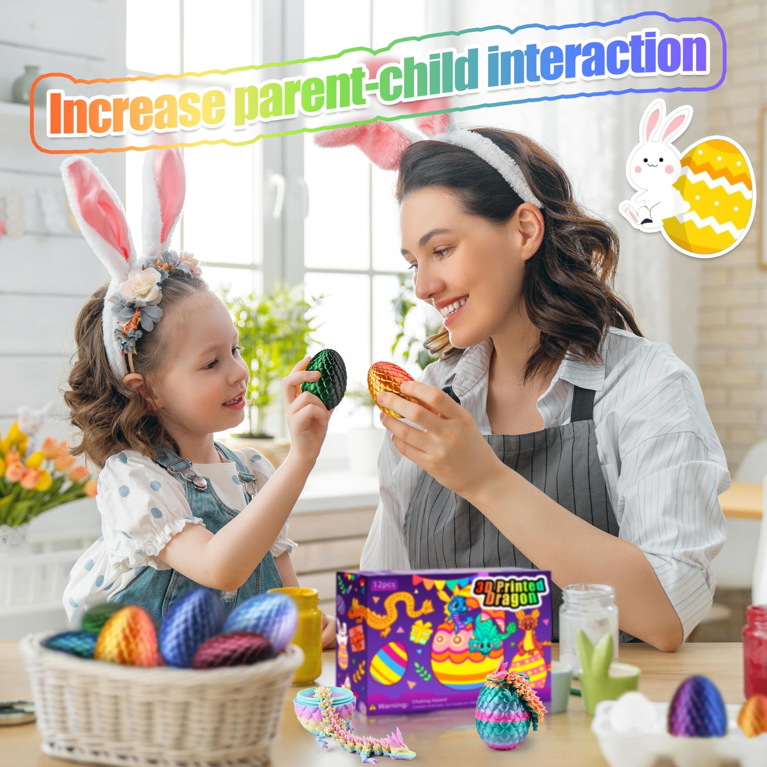 Impossmaker 12PCS 3D Printed Dragon Eggs with Dragon Inside, Cool Stuff Christmas Fun Gifts, Mini Dragon Egg Set Articulated Crystal Fidget Toy for Adults Teens Boy Gifts Easter Basket Stuffers