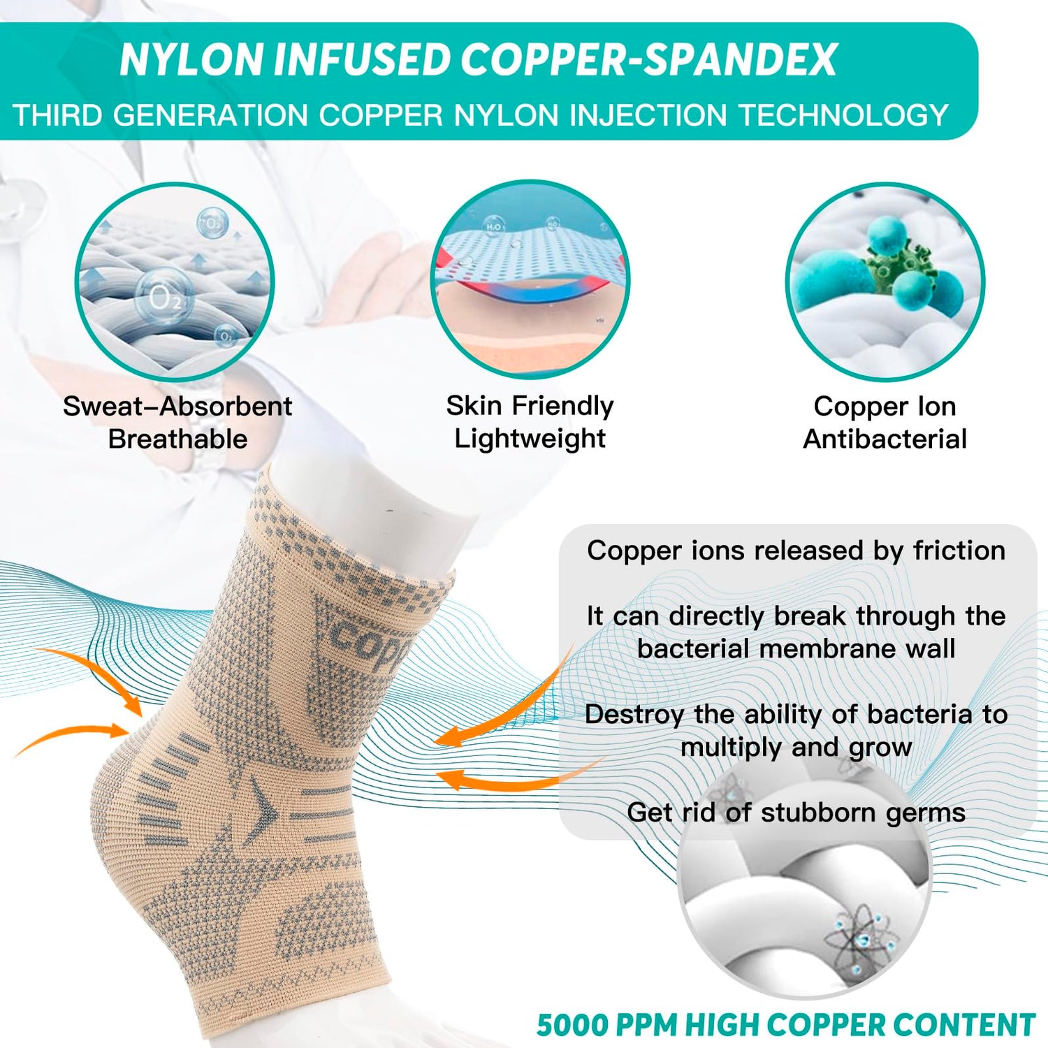 - ✔️Real high copper-infused nylon material-breathable and deodorant: INDEEMAX copper ankle brace for men & women is made from high copper-infused nylon (copper ion+5000PPM) +10% spandex material, the copper ions are studied can be used to deodorize, keep skin healthy, and absorb moisture. High-quality nylon material makes it have good elasticity and sufficient support, so our copper infused ankle support compression sleeve can be worn with shoes and socks while effectively improving injury prevention performance!