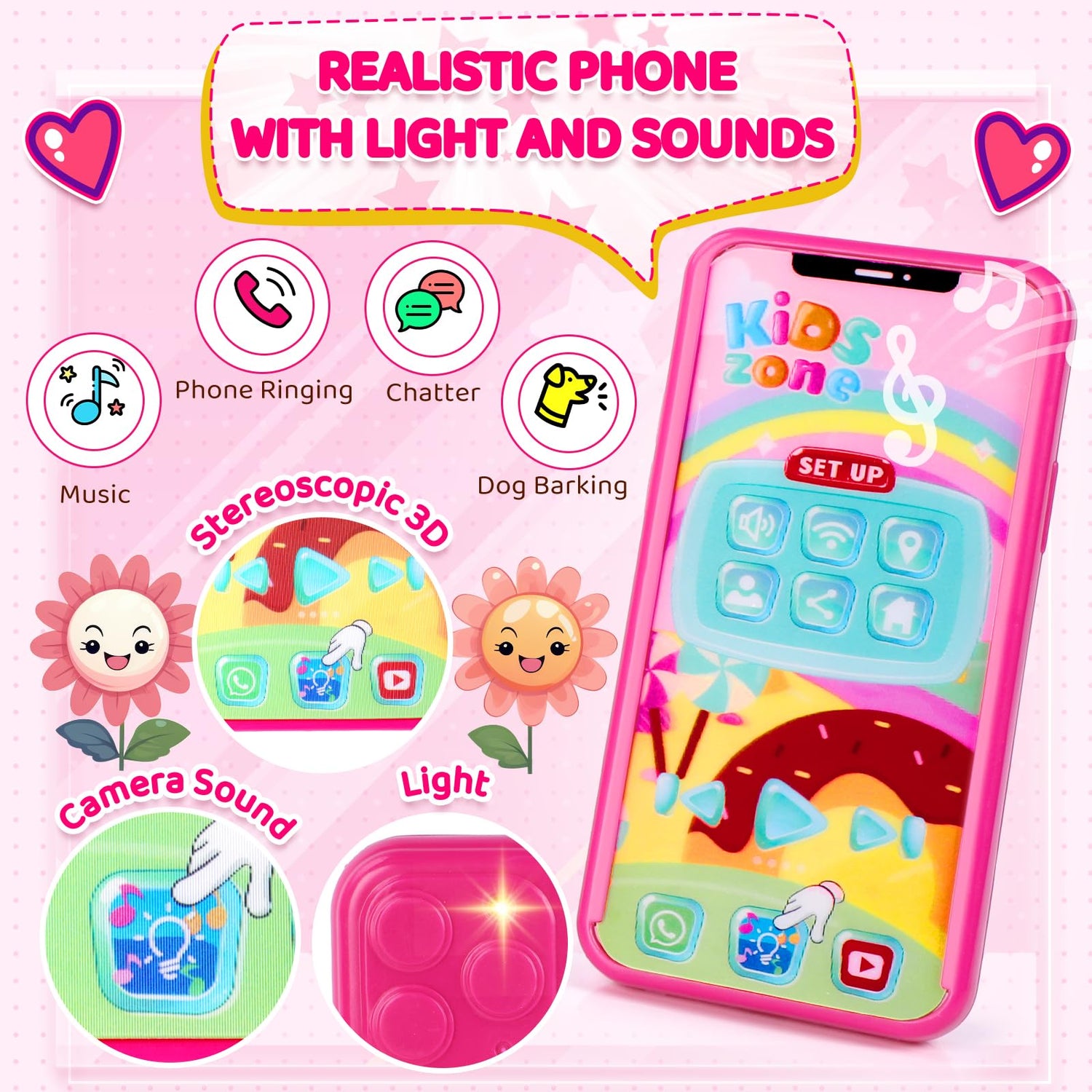 - EDUCATIONAL AND ENJOYABLE LITTLE GIRL PURSE - Toddler girls will be obsessed with putting on makeup and lipstick like mommy every morning. She can pretend to take photos with this toy phone. Wow, she can "shop" with fake money and credit cards like Mommy. This realistic purse set will satisfy kids' desire for imitation and improve girls' creativity, imagination and learning ability! Teach and play, cultivate children's aesthetic sense and confident and elegant temperament.