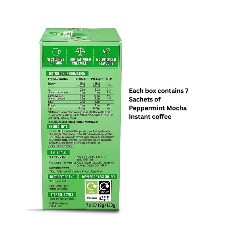 - Aero Peppermint Mocha Nescafe coffee : the decadent fusion of chocolaty richness and minty freshness, elevated with a hint of cocoa for an indulgent coffee break experience like no other.