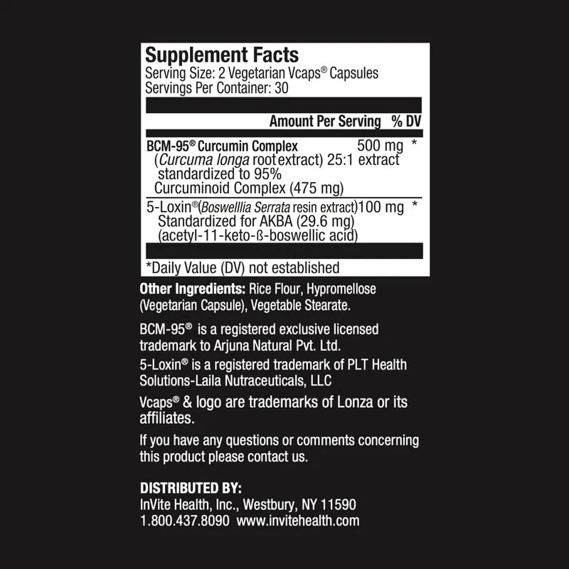 Invite Health Bio-Curcumin and 5-Loxin - Supports Joint, Brain and Intestinal Health - Highly Absorbable Combination of Curcumin and Boswellia Serrata - 60 Vegetarian Capsules (2-Pack)