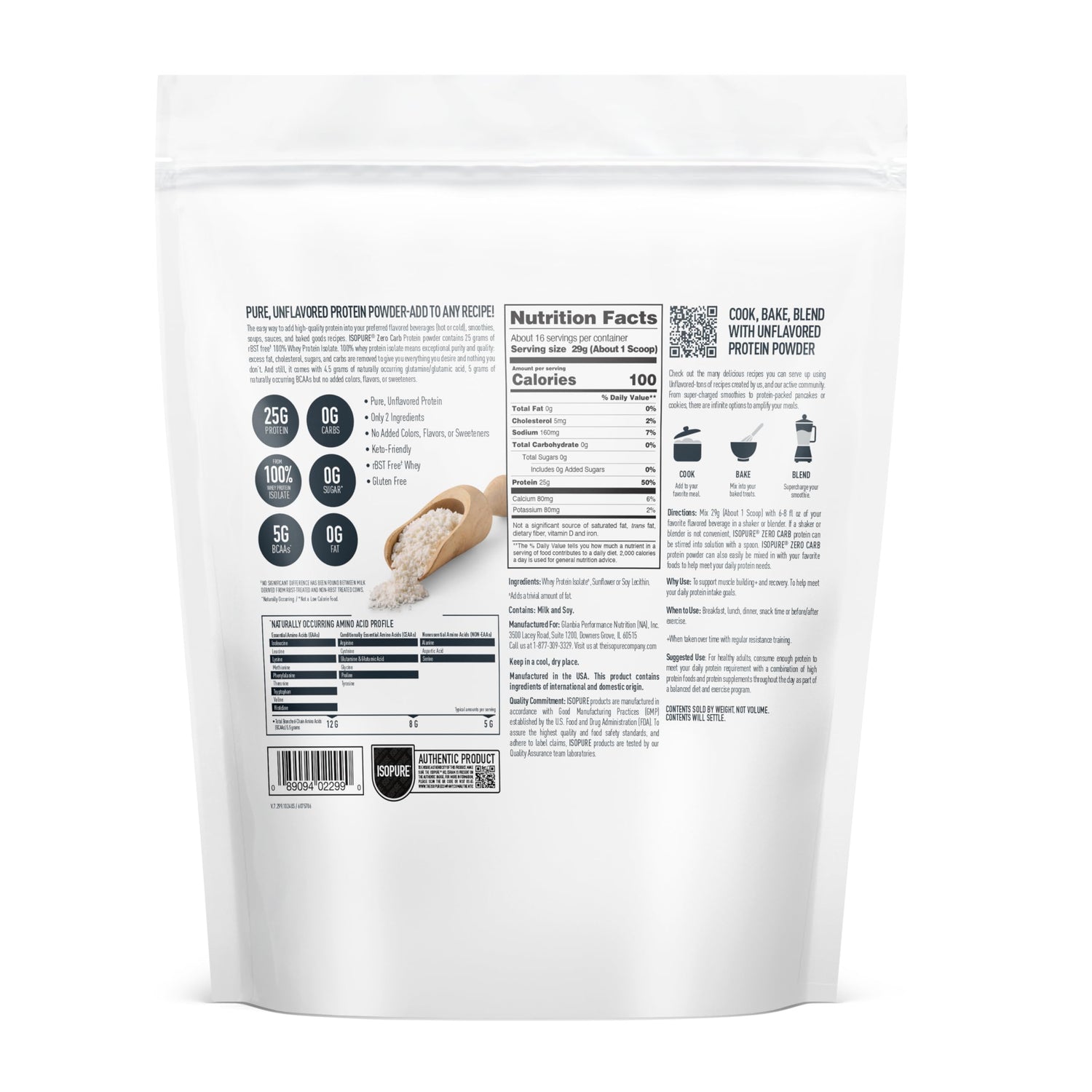 Isopure Zero Carb 100% Pure Whey Isolate Protein Powder, Lactose Free, Gluten Free, With Vitamins, Unflavored, 25g Protein Per Serving, 1 Lb, 16 Servings (Packaging May Vary) is backordered and will ship as soon as it is back in stock.
