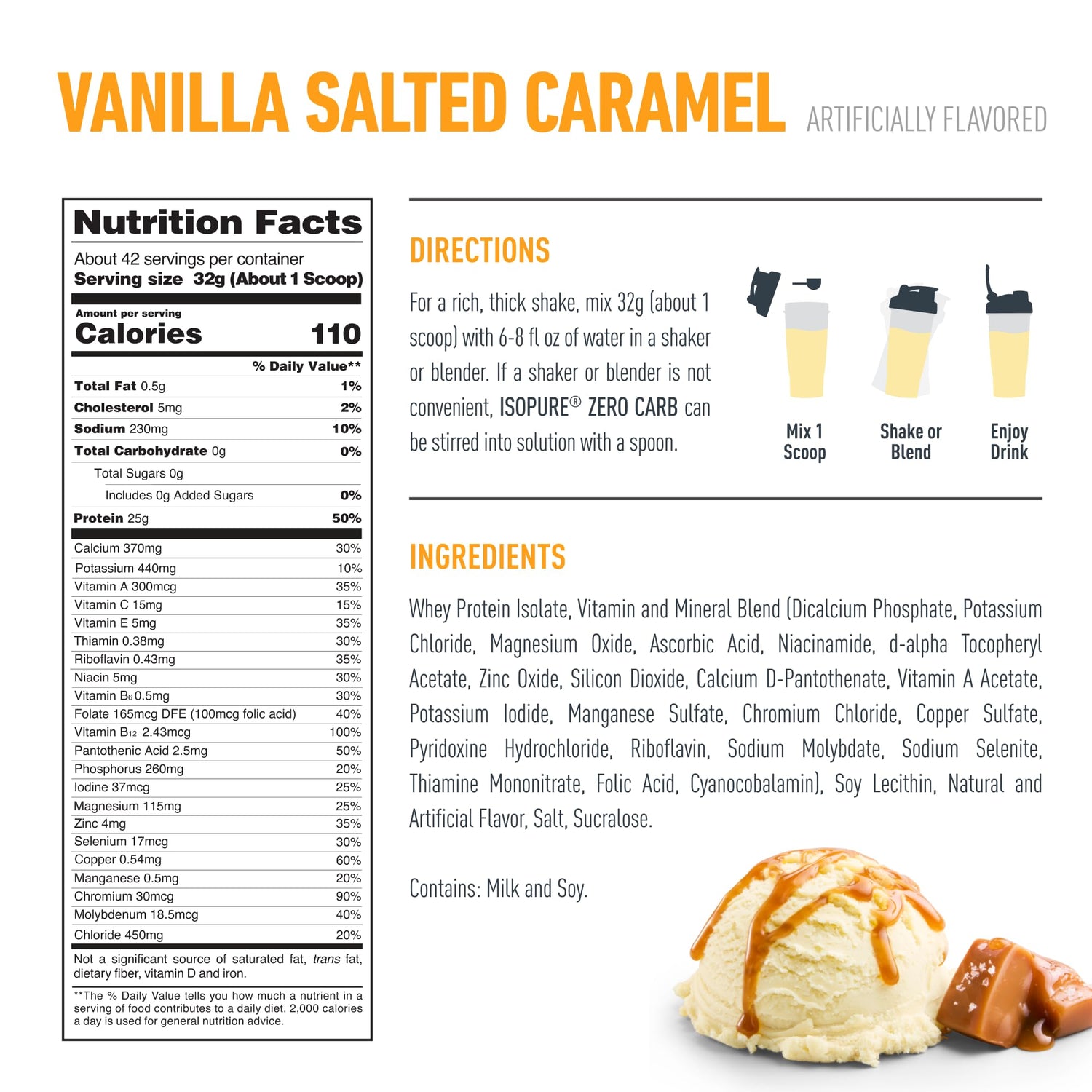 Isopure Zero Carb 100% Pure Whey Isolate Protein Powder, Lactose Free, Gluten Free, With Vitamins, Vanilla Salted Caramel, 25g Protein Per Serving, 3 Lbs, 42 Servings (Packaging May Vary)