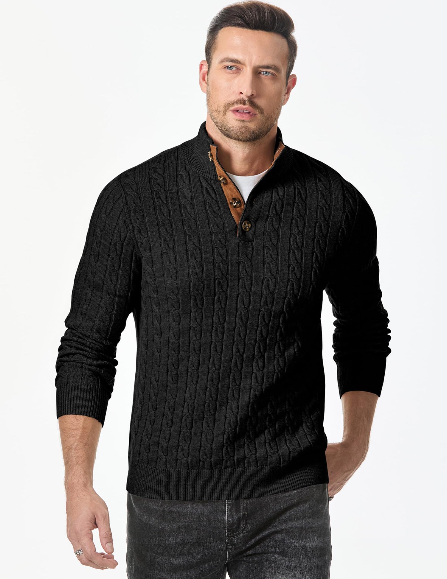 JMIERR Men's Cable Knit Slim Fit Casual Long Sleeve Essentials Soft Touch Button Stand Collar Wool Christmas Sweaters, M, Black