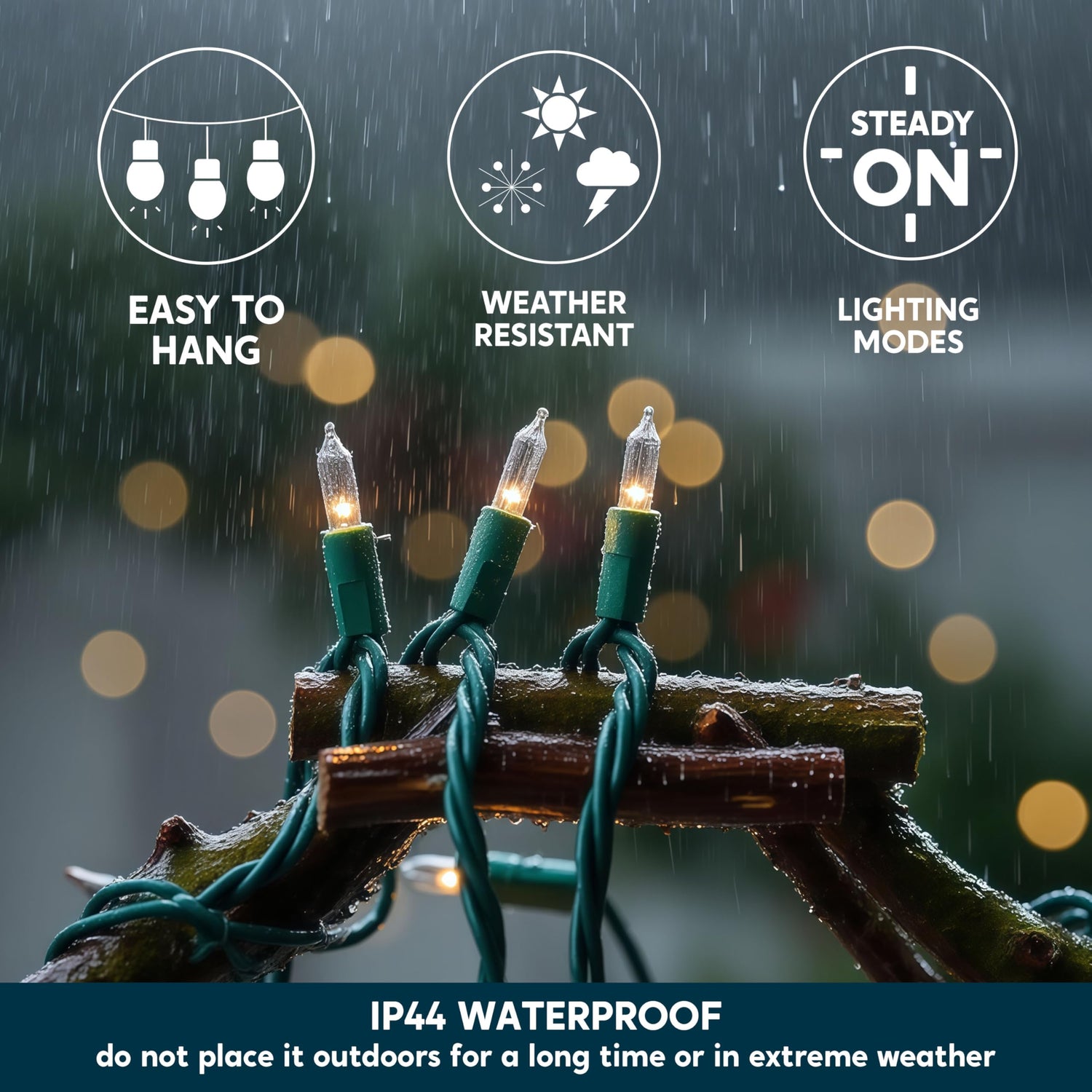 - UL588 CERTIFIED FOR INDOOR & OUTDOOR SAFETY - Ensure holiday peace of mind with our string lights, rigorously tested to meet US UL safety standards. The IP44 waterproof design and durable construction withstand rain and snow, making them perfect for Christmas tree decorations, garden, patio, and year-round use.