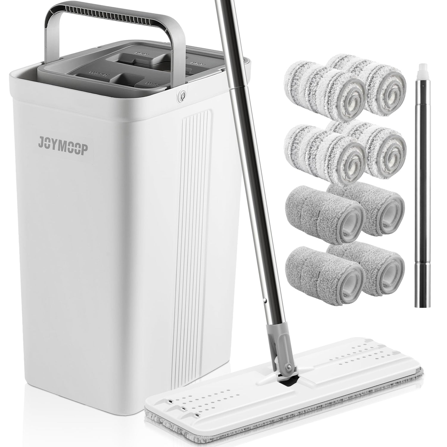 JOYMOOP Mop and Bucket Set with Wringer, Dust Mops for Floor Cleaning, Wall Cleaner with Long Handle,Wet and Dry Use - 8 Microfiber Mop Pads