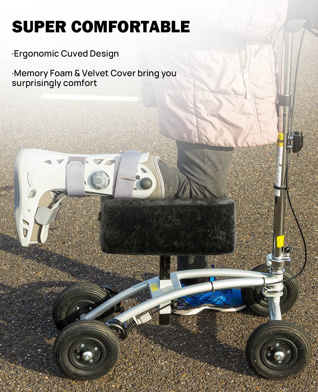 - 【Enhance Comfort】Over 2" extra thick memory foam knee scooter cushion with skin-friendly velvet surface provides long-lasting comfort. Effectively reduces fatigue and stress on legs and knees