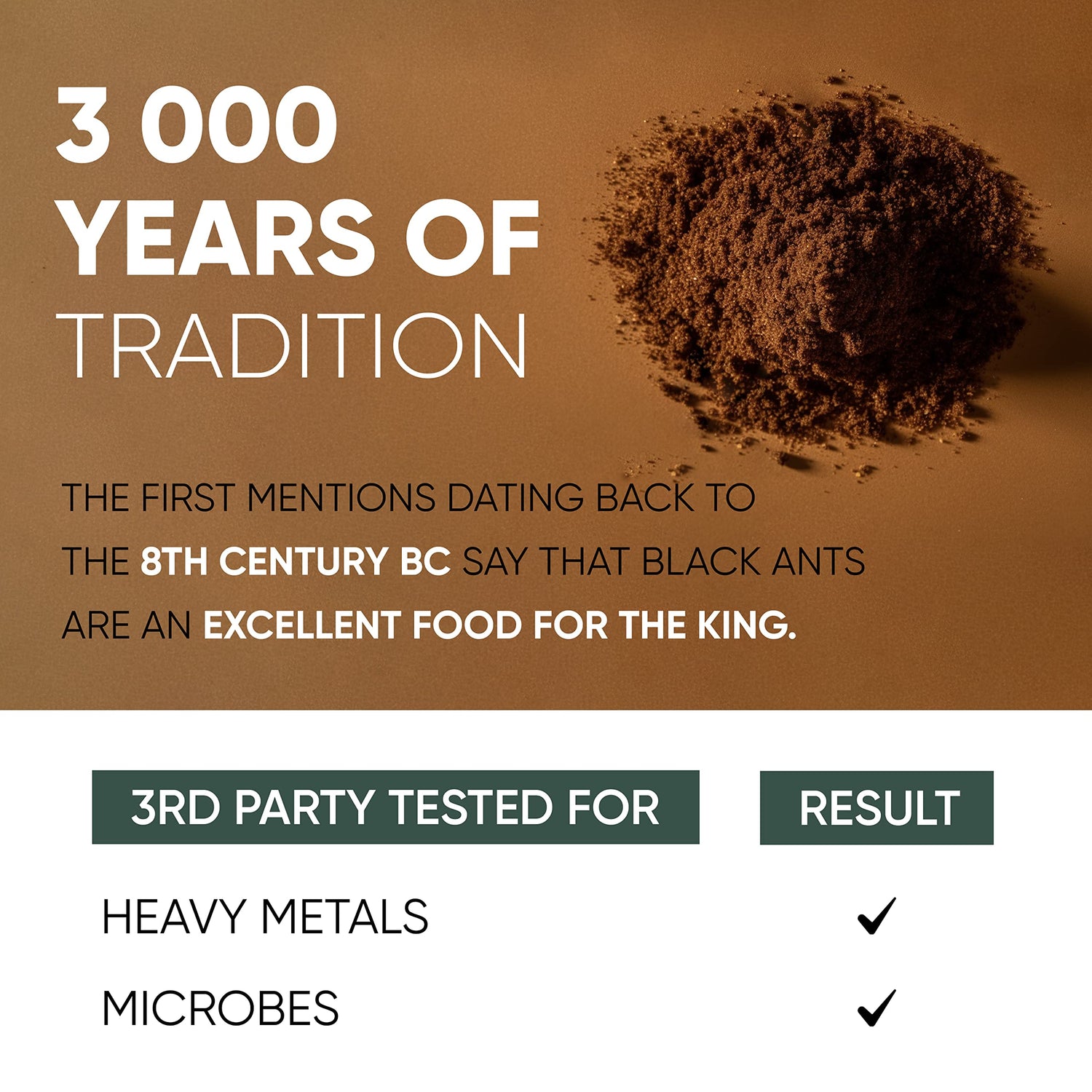 - Sourced from Nature - Extracted using natural processes to retain the full spectrum of beneficial compounds. GMO free, gluten free, soy-free. Keep in mind that black ant powder has distinctly strong, earthy taste which most people obviously are not fond of.