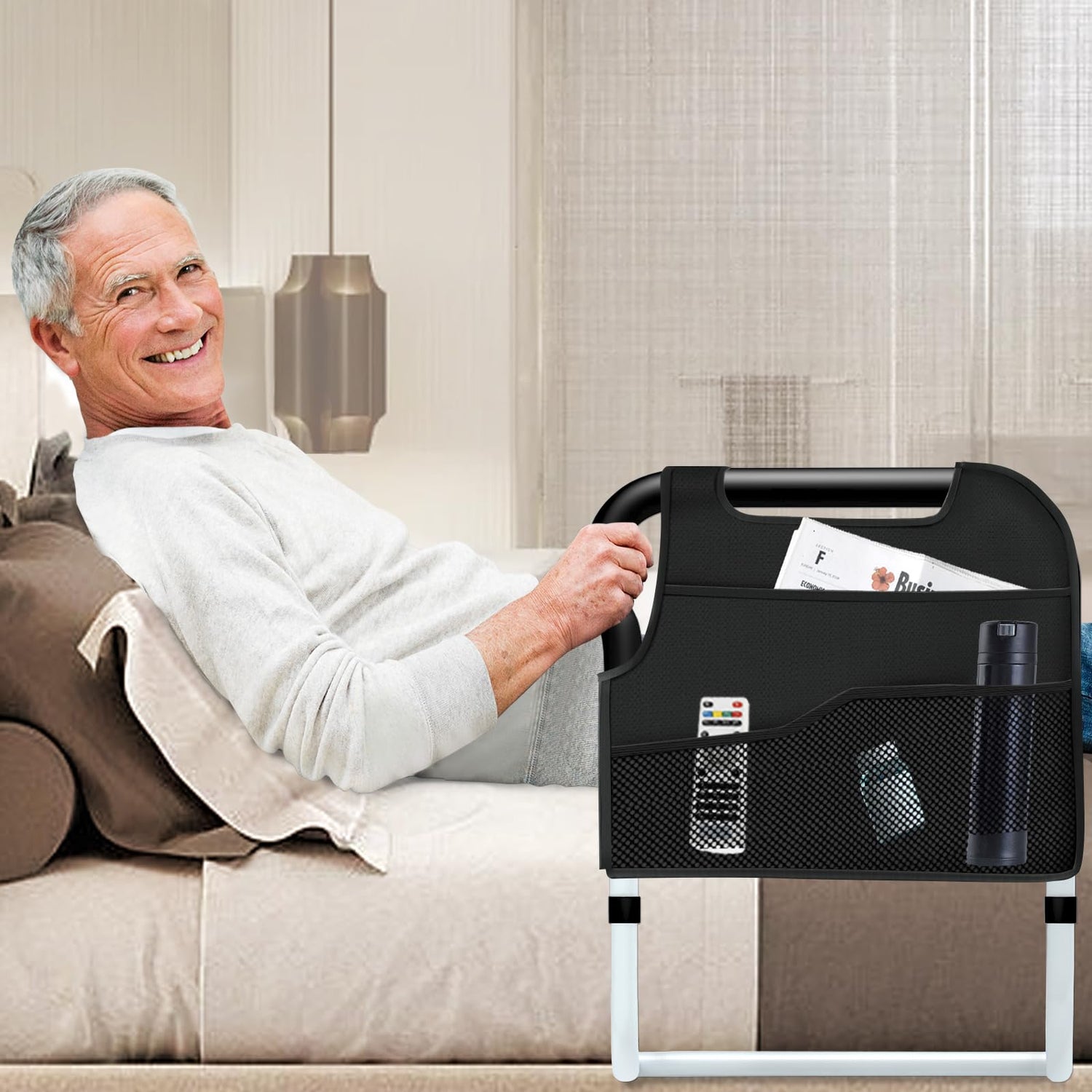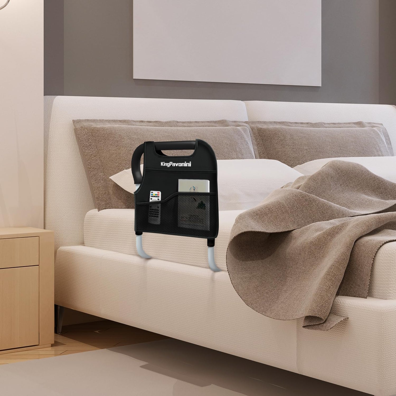 KingPavonini Bed Side Assist Handle Bar Safety Rail for Elderly Adults - Medical Bed Mobility Assistant Bar with Free Storage Bag and Fixing Strap, Support Up to 400lbs