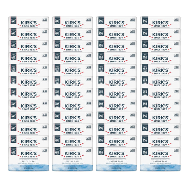 Kirk's Castile Bar Soap for Men, Women & Children - Made with Premium Coconut Oil, Sensitive Skin Formula, Vegan, Non GMO, Original Fresh Scent, 4 oz. Bars, 48 Pack