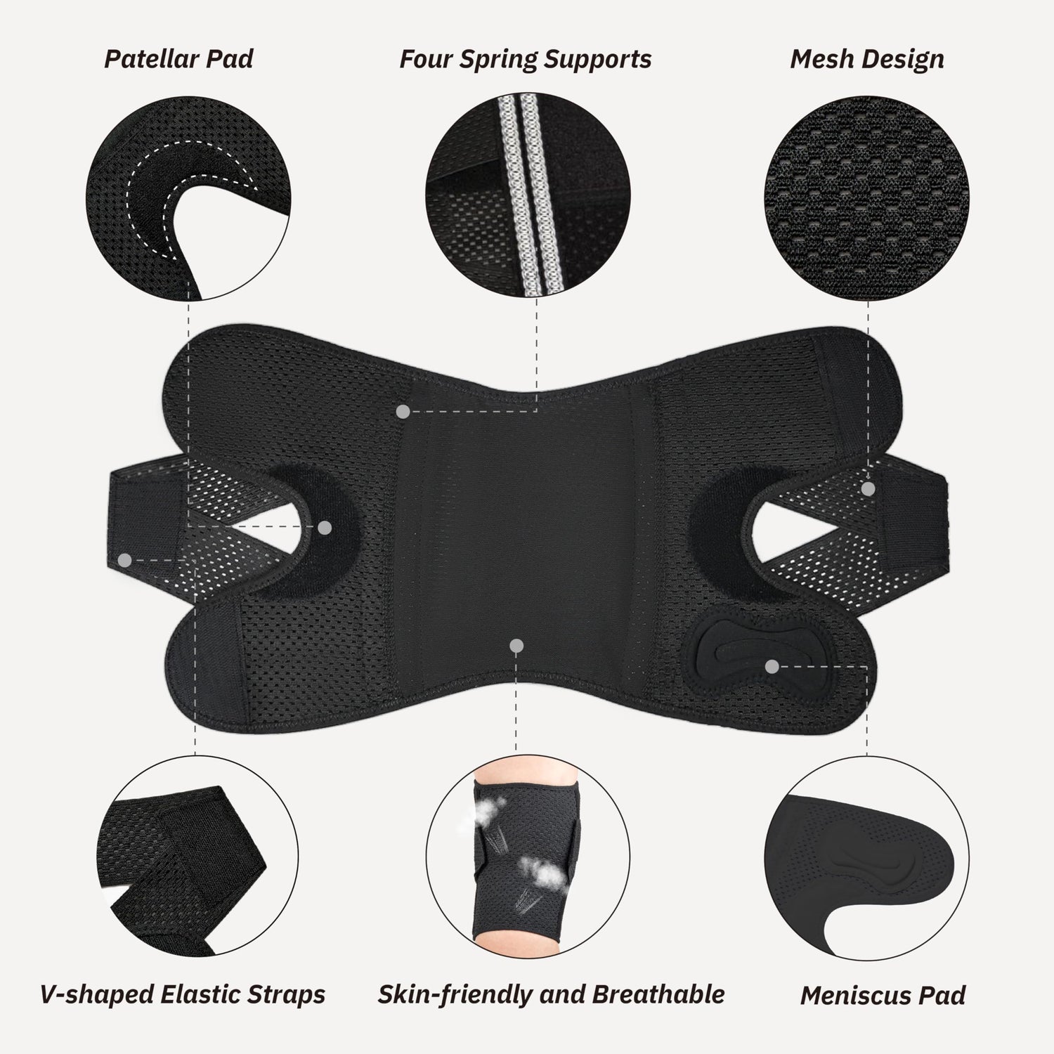 - Built-in Metal Spring Stabilizers: The four memory spring stabilizers on both sides of the knee brace provide stability and protection for weak and injured knees, reducing knee pressure and offering maximum support. This knee brace with side stabilizers effectively relieves knee pain, meniscus tears, ACL, MCL injuries, arthritis, sprains, strains, and helps with recovery from sports injuries. It’s the best choice for sports protection and pain recovery.