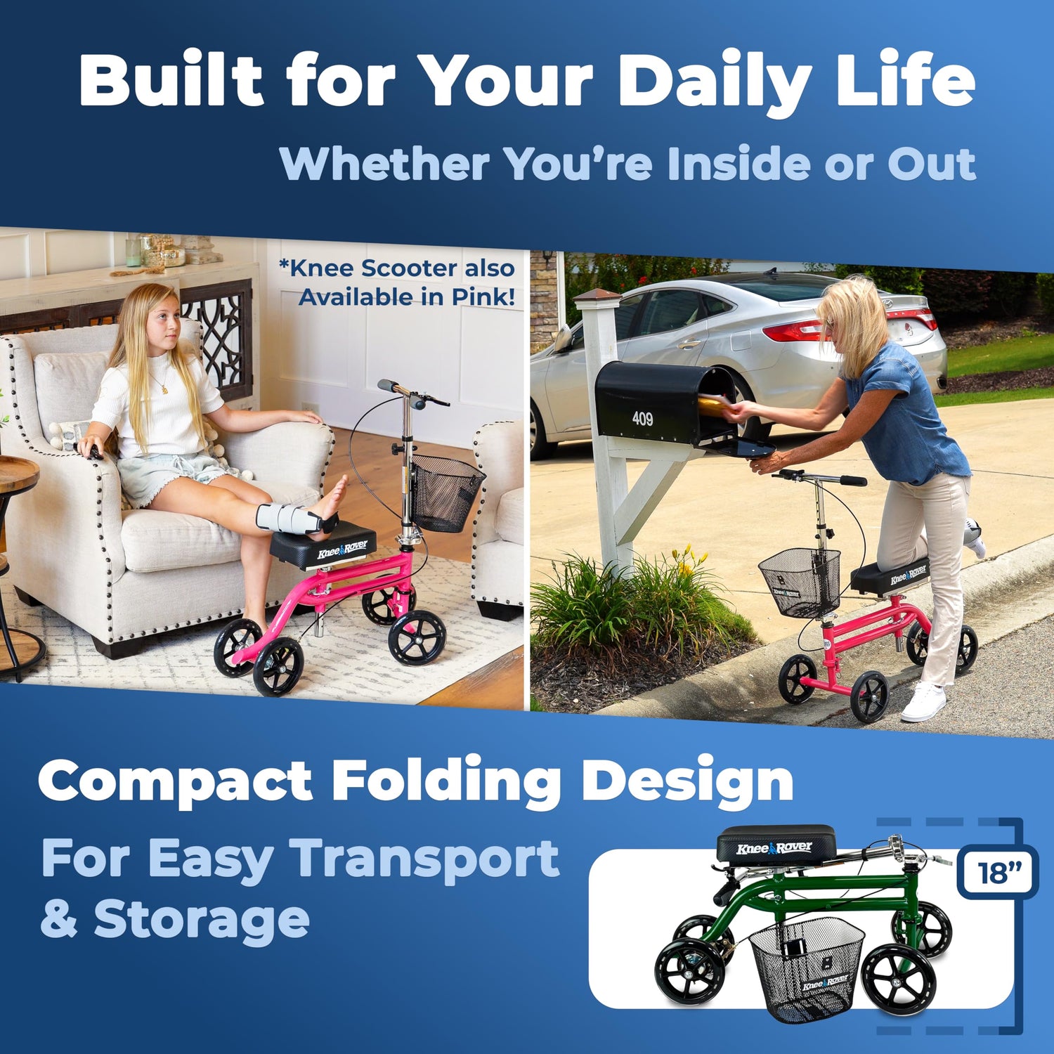 KneeRover Steerable Knee Scooter Knee Walker for Adults for Foot Surgery, Broken Ankle, Foot Injuries - Foldable Knee Rover Scooter for Broken Foot Injured Leg Crutch Alternative with Basket Green