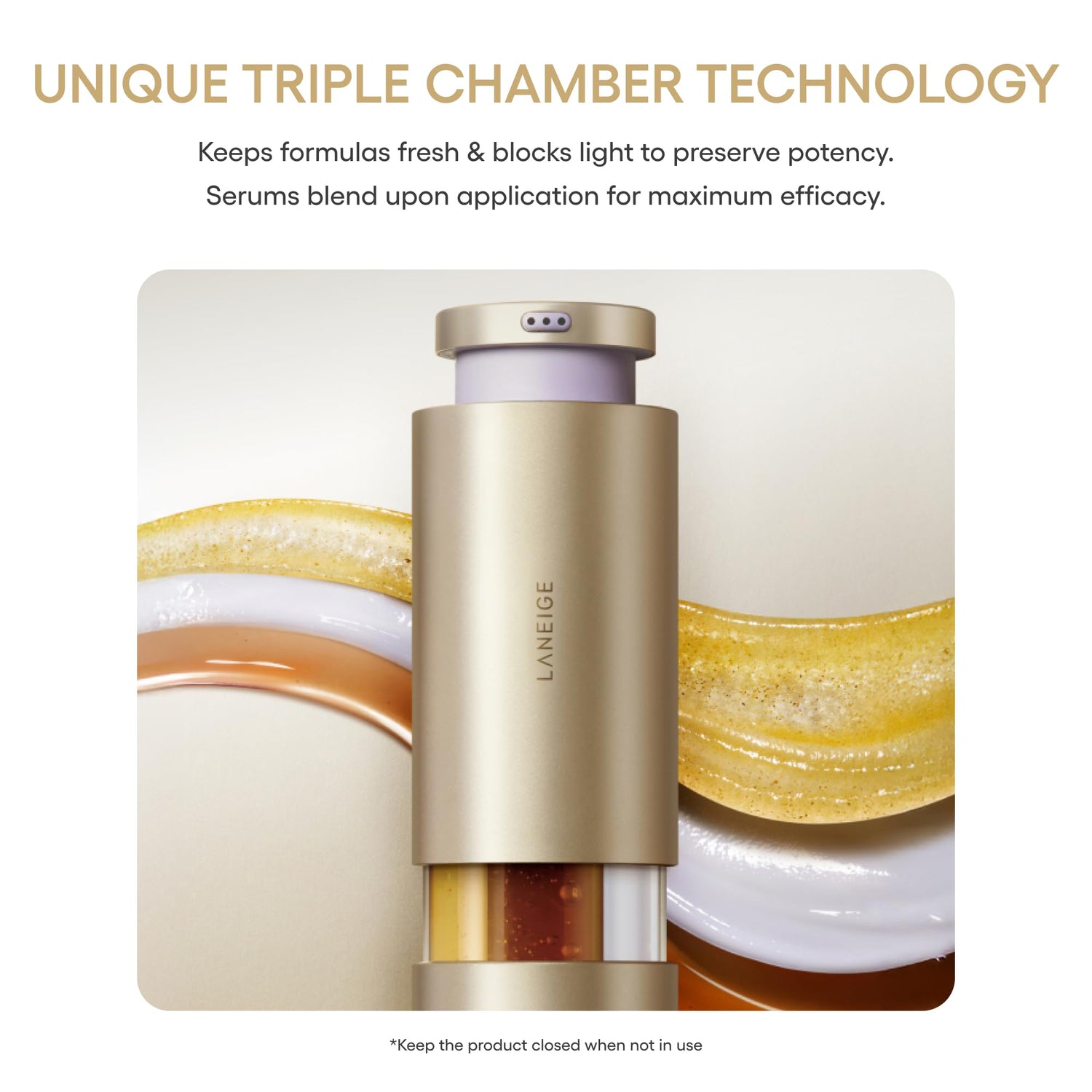 - Three gentle serums target skin three ways to improve fine lines, firmness, & glow. The unique triple chamber packaging blocks out light to help keep the formulas fresh & potent while they are not in use.