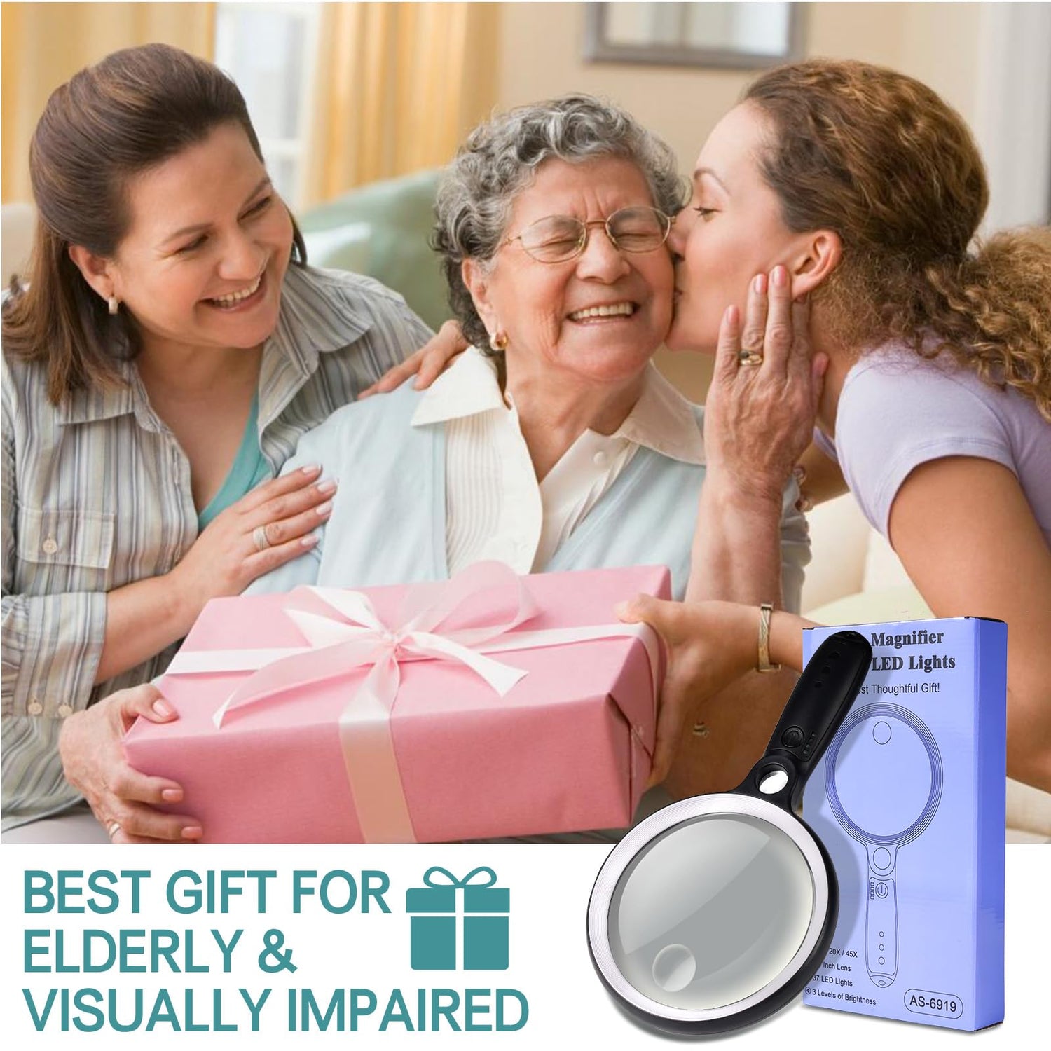 - THOUGHTFUL GIFT FOR SENIORS: Elevate their reading experience with our lighted magnifying glass handheld featuring a built-in book light. Perfect gift for Christmas, birthdays, and special occasions.