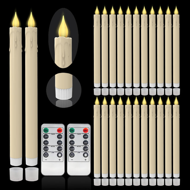 LED Flameless Taper Candles, 10.6 Inch, Set of 24, 2AA Battery Operated with Remote Control, Timer Function, Halloween, Christmas and Wedding Banquet Table Center Decoration, Ivory White (24)