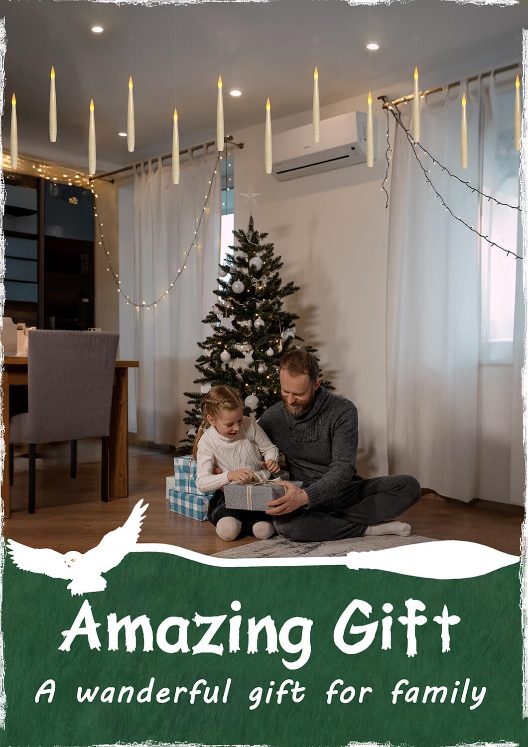 - Super easy to hang: 4.9ft long clear fishing line (barely visible) pre-attached on the tip of each candle, can hang down straight instead of being at an angle, and it's long enough to accommodate whatever your length needs are. You can hang candles onto the ceiling, window, wall with thumbtacks or stick hook, or just attach to the Christmas Tree.