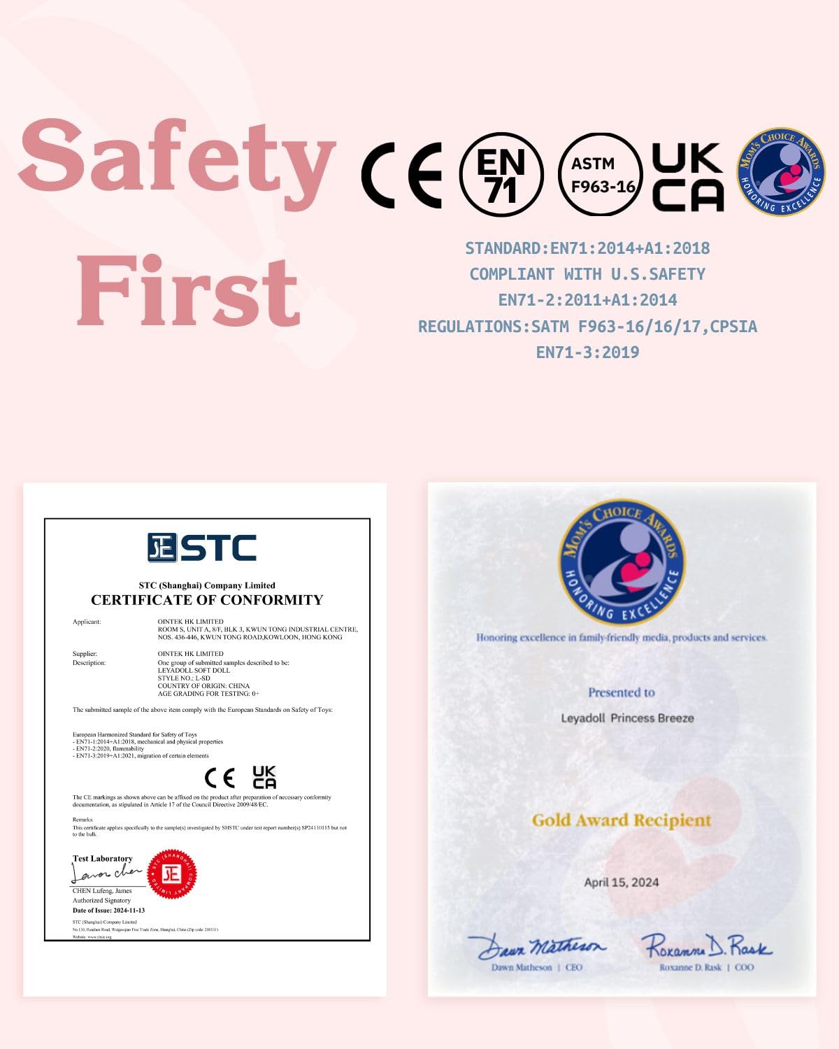 - šćCertified for Safetyć: We understand the paramount importance of safety when it comes to toys for young children. Rest assured, our baby dolls hold certifications from CPSIA and CCPS, constructed with premium materials that are free from harmful chemicals. They undergo rigorous safety testing to meet the highest standards. You can be confident that your child is playing with a secure and trusted companion.