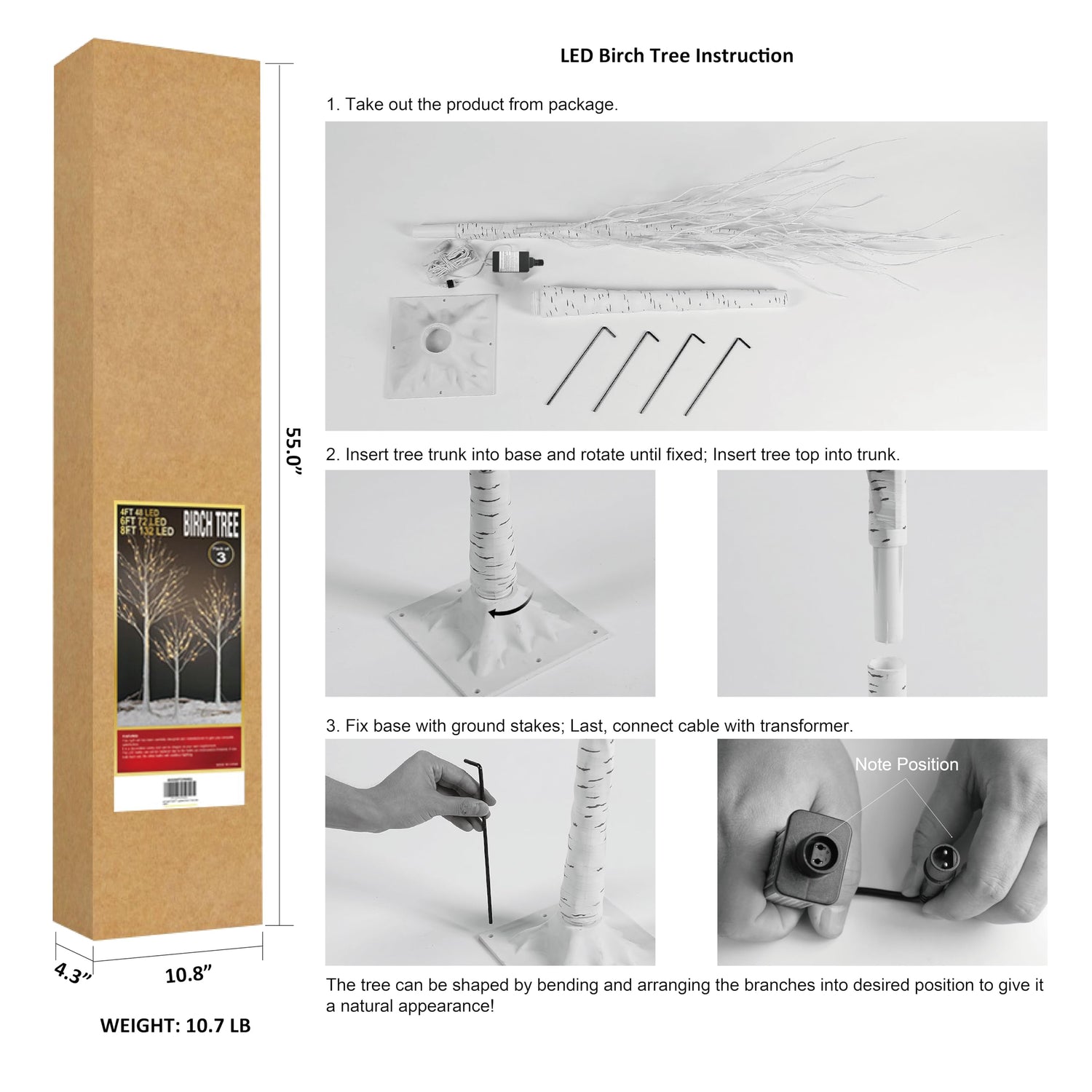 - [CHRISTMAS TREE DECORATION] Includes 4 ground stakes for outdoor stability. Perfect for garden lighting, wedding decor, holiday parties and home display.