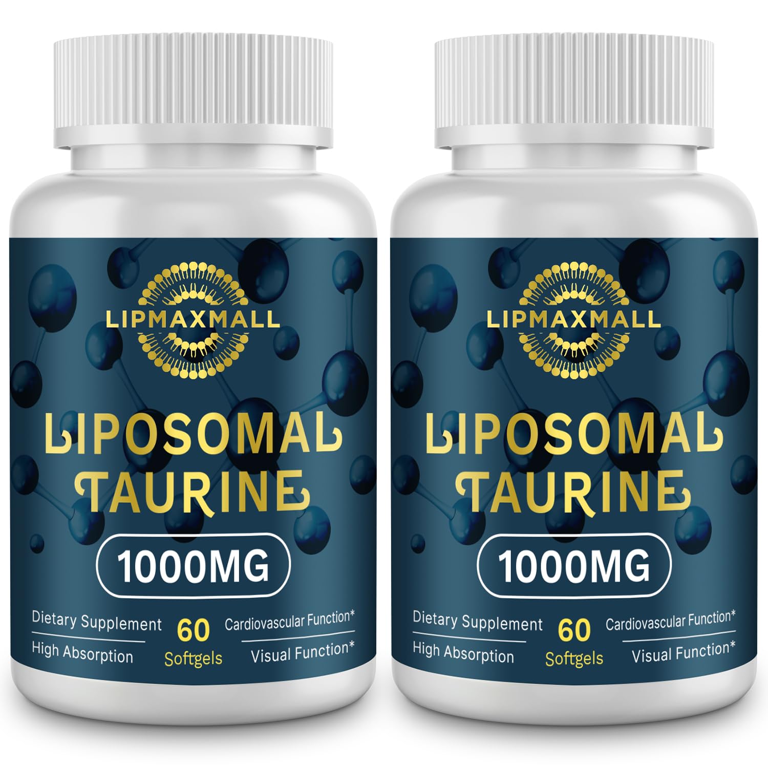 lipmaxmall Liposomal Taurine Supplement 1000mg, High Absorption Amino Acid for Heart, Nerve, Brain, Visual (60 Softgels - 2 Pack)