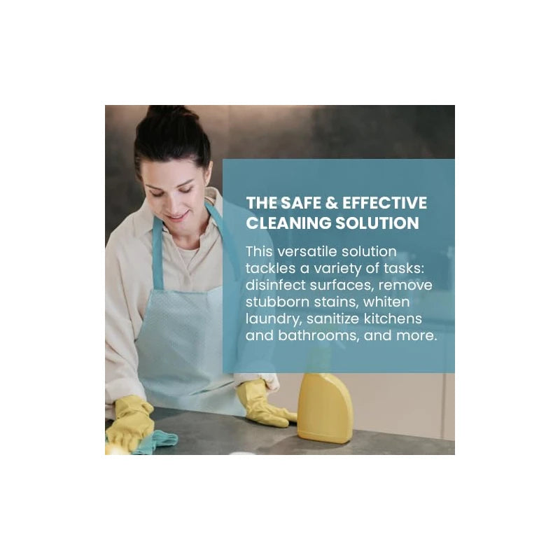 - VERSATILE APPLICATIONS: Ideal for disinfecting surfaces, removing tough stains, sanitising kitchen and bathroom areas, whitening laundry, and more.