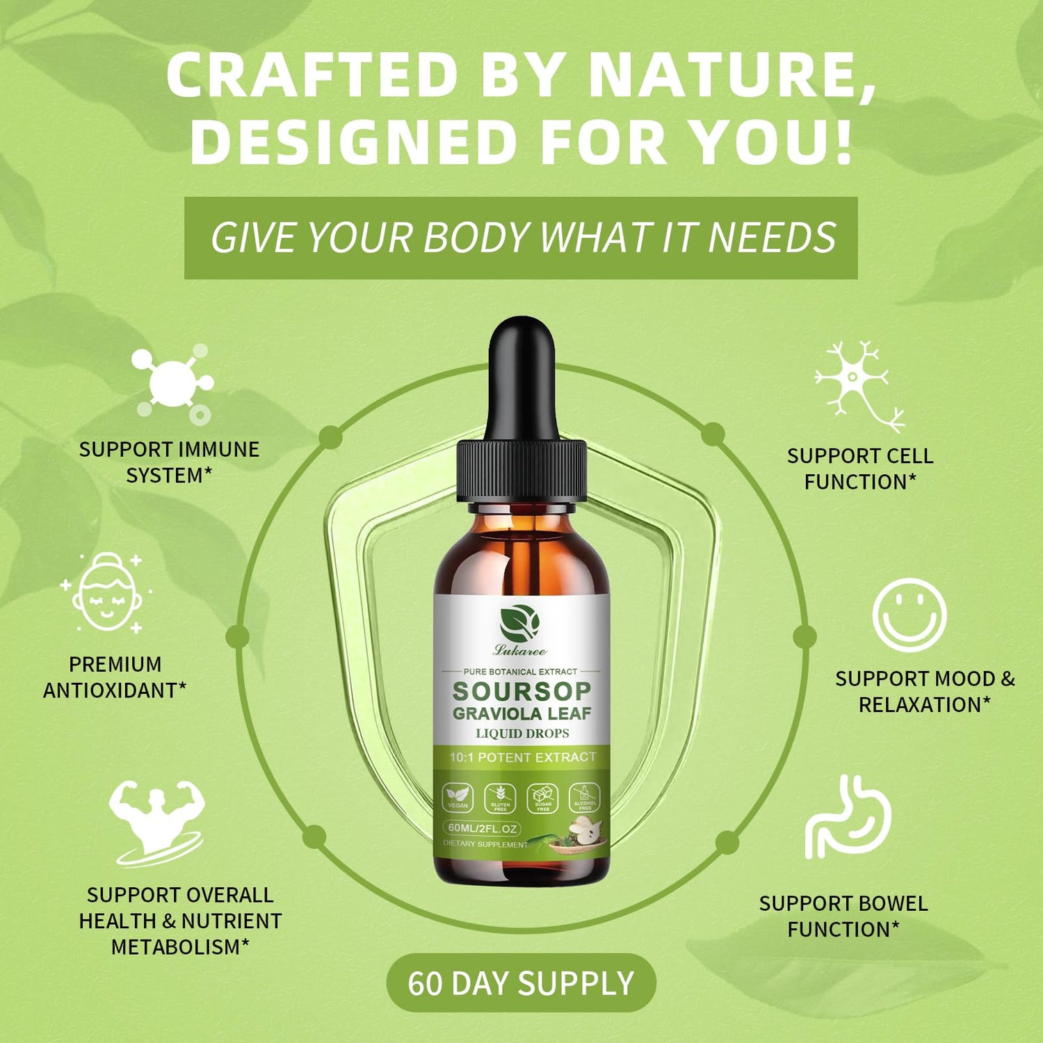 - 10:1 Ultra-Concentrated: Our advanced soursop bitters liquid delivers a 10:1 soursop leaf concentrate: One drop of soursop bitters equals the bioactive power of 10 raw soursop leaves. Lukaree soursop graviola liquid can get fast-acting, high-impact support for overall health—all from a single potent source