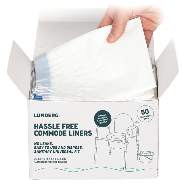 Lunderg Commode Liners - Value Pack 50 Count Universal Fit - Medical Grade Bedside Commode Liners Disposable for Adult Commode Chair, Portable Toilet Bags or Camping Toilet Bags