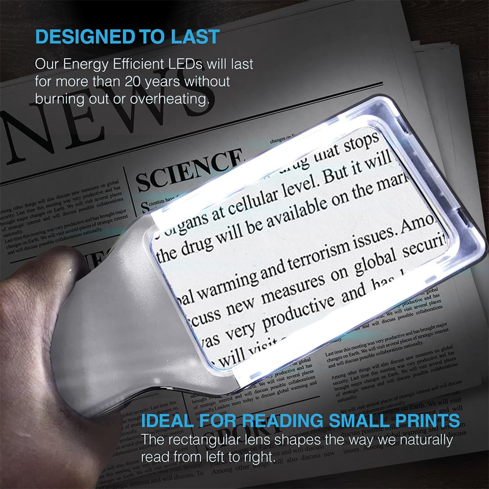 - ๐จ๐น๐๐ฟ๐ฎ-๐๐ฟ๐ถ๐ด๐ต๐ ๐๐๐๐ | ๐ญ๐ฌ๐ฌ,๐ฌ๐ฌ๐ฌ-๐๐ผ๐๐ฟ ๐๐ผ๐ป๐ด ๐๐ถ๐ณ๐ฒ๐๐ฝ๐ฎ๐ป: Trust in the lasting reliability of our magnifier equipped with 16 energy-efficient, ultra-bright LEDs boasting an incredible 100,000-hour lifespan. Delivering consistent, clear, and bright illumination that wonโt fade, saving energy and money over time.