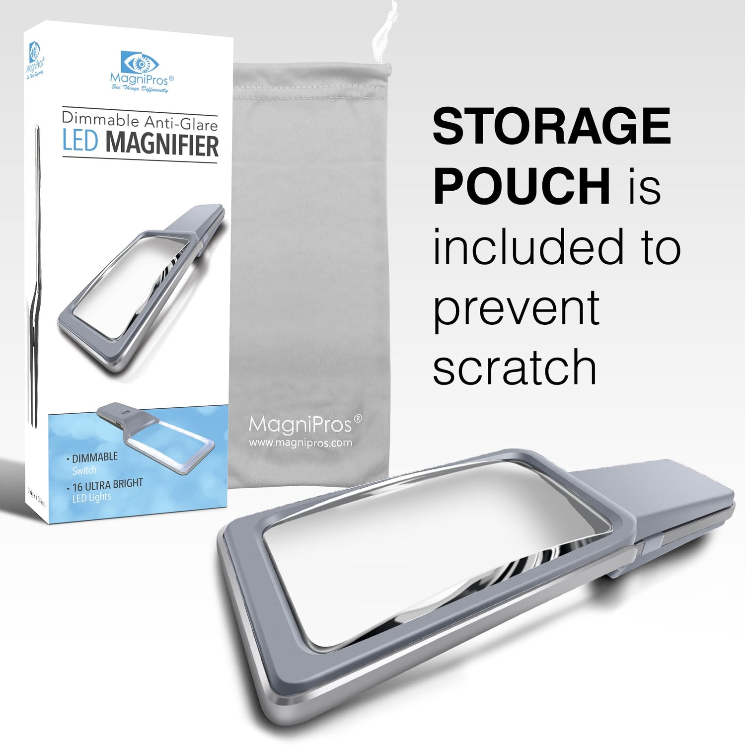 MagniPros 6X Rechargeable Magnifying Glass for Reading with 3 Color Light Modes & Anti-Glare Lens - Relieve Eye Strain | Perfect for Low Vision Seniors, Inspection, Crafts & Fine Print