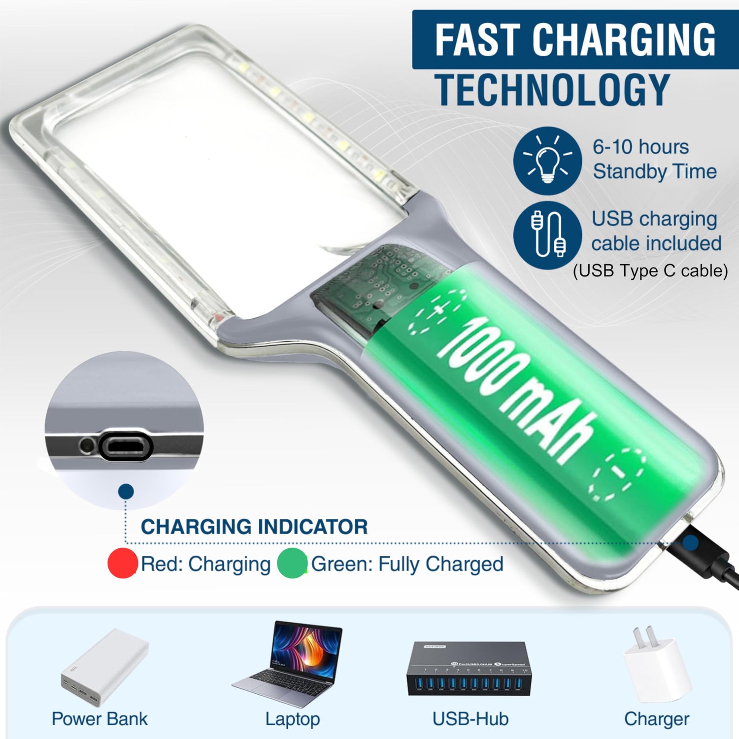 - ๐๐ฎ๐๐-๐๐ต๐ฎ๐ฟ๐ด๐ฒ ๐๐๐ ๐ ๐ฎ๐ด๐ป๐ถ๐ณ๐ถ๐ฒ๐ฟ | ๐ฅ๐ฒ๐ฐ๐ต๐ฎ๐ฟ๐ด๐ฒ๐ฎ๐ฏ๐น๐ฒ ๐๐ผ๐ป๐๐ฒ๐ป๐ถ๐ฒ๐ป๐ฐ๐ฒ: Effortlessly recharge your magnifier in just 2 hours for up to 10 hours of powerful illumination. The included Micro USB cable and eco-friendly rechargeable battery eliminate constant battery replacements, ensuring uninterrupted reading anytime, anywhere.