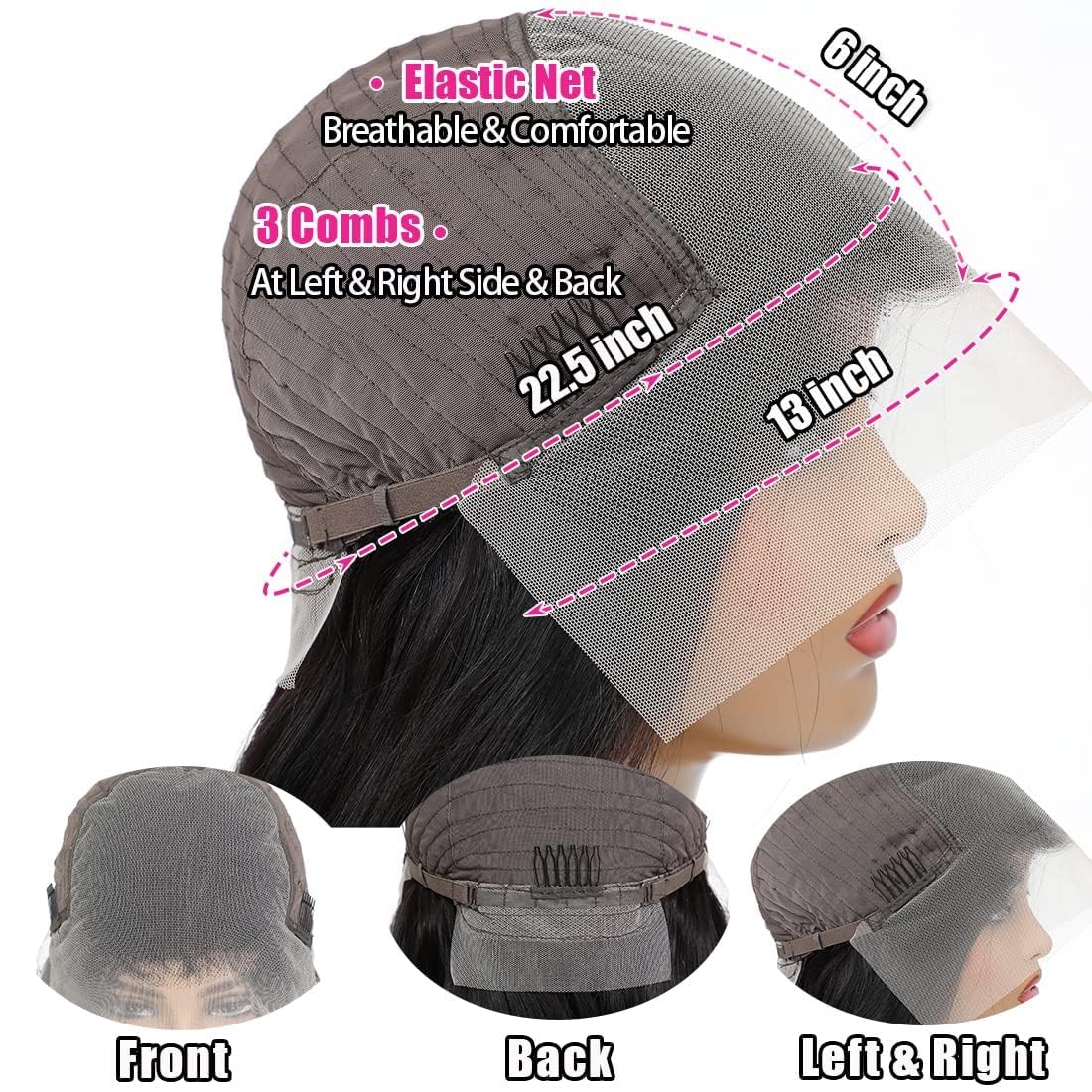 - 13x6 HD Lace Front Wigs Human Hair Cap Process: Deep Wave Wigs Human Hair Cap is Made of Soft, Breathable and Stretchy Material, Curly Wig Human Hair Cap Size (21.5-22.5 Inches) With 3 Combs, It is Also with Adjustable Straps Can Change the Tightness to Ensure Perfect Fit Around Your Head, Firm and Comfortable.