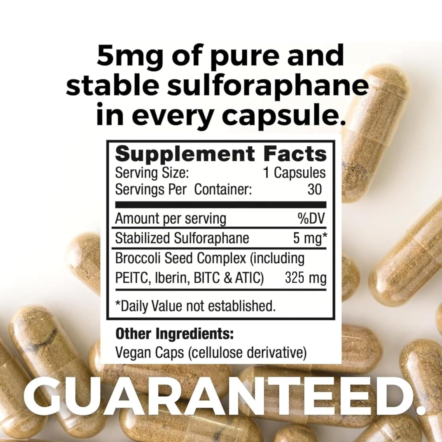 • Powerful Ingredients Derived from Nature: Our stabilized sulforaphane broccoli extract supplement is made only from natural ingredients. BrocElite does not contain any Glyphosate residue, gluten, GMO, and is made without fillers, artificial colors, flavoring, sweeteners, preservatives, sugar, starch, corn, soy, egg, lactose, wheat, yeast, fish, or sodium. And its made in the USA!