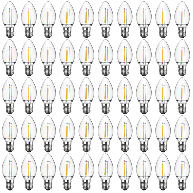 Meconard C7 Led Replacement Christmas Light Bulbs, C7 Shatterproof Led Bulbs for Christmas Outdoor String Lights, E12 Candelabra Base, Commercial Grade Holiday Bulbs, Warm White, 50 Pack is backordered and will ship as soon as it is back in stock.