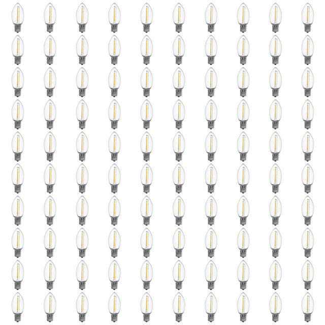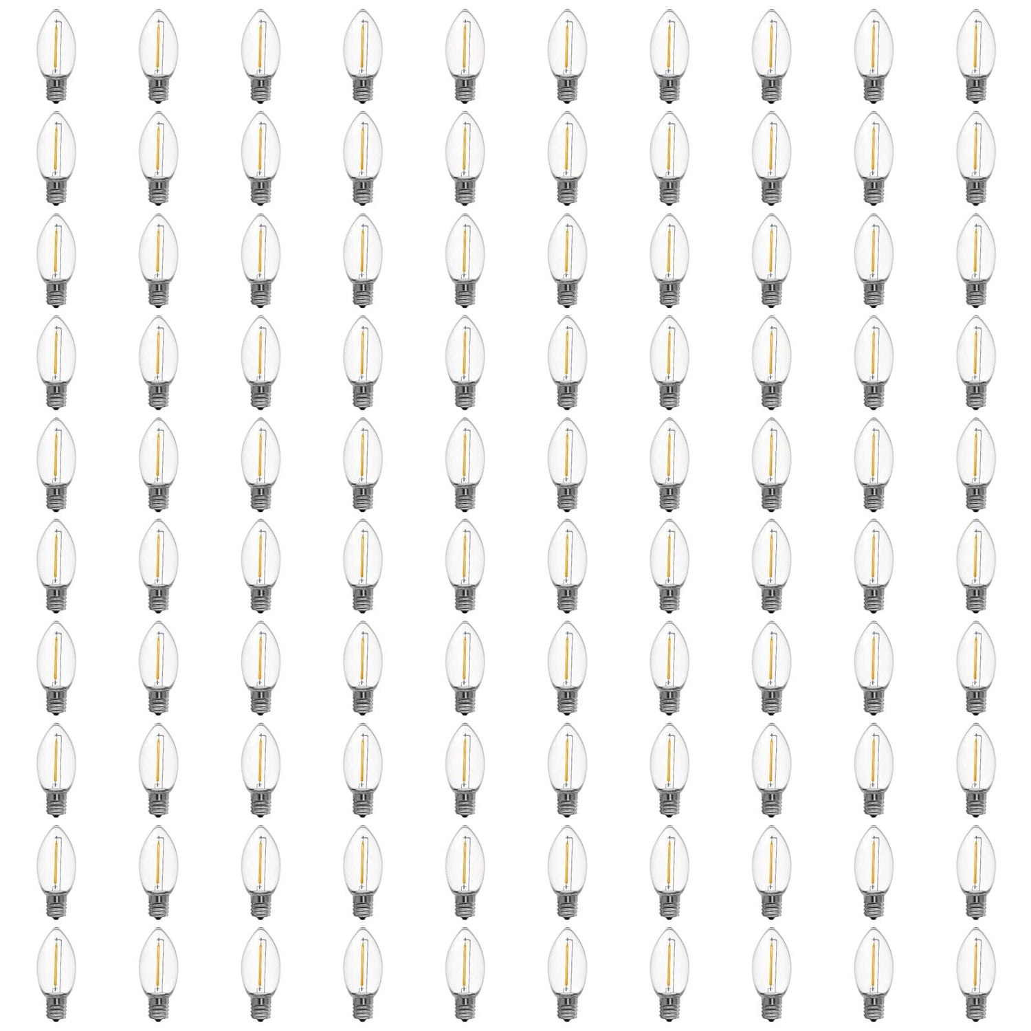 Meconard C9 Led Replacement Christmas Light Bulbs, 100 Pack C9 Shatterproof Plastic Led Bulbs for Christmas Outdoor String Lights, E17 Intermediate Base, Commercial Grade Holiday Bulbs, Warm White.