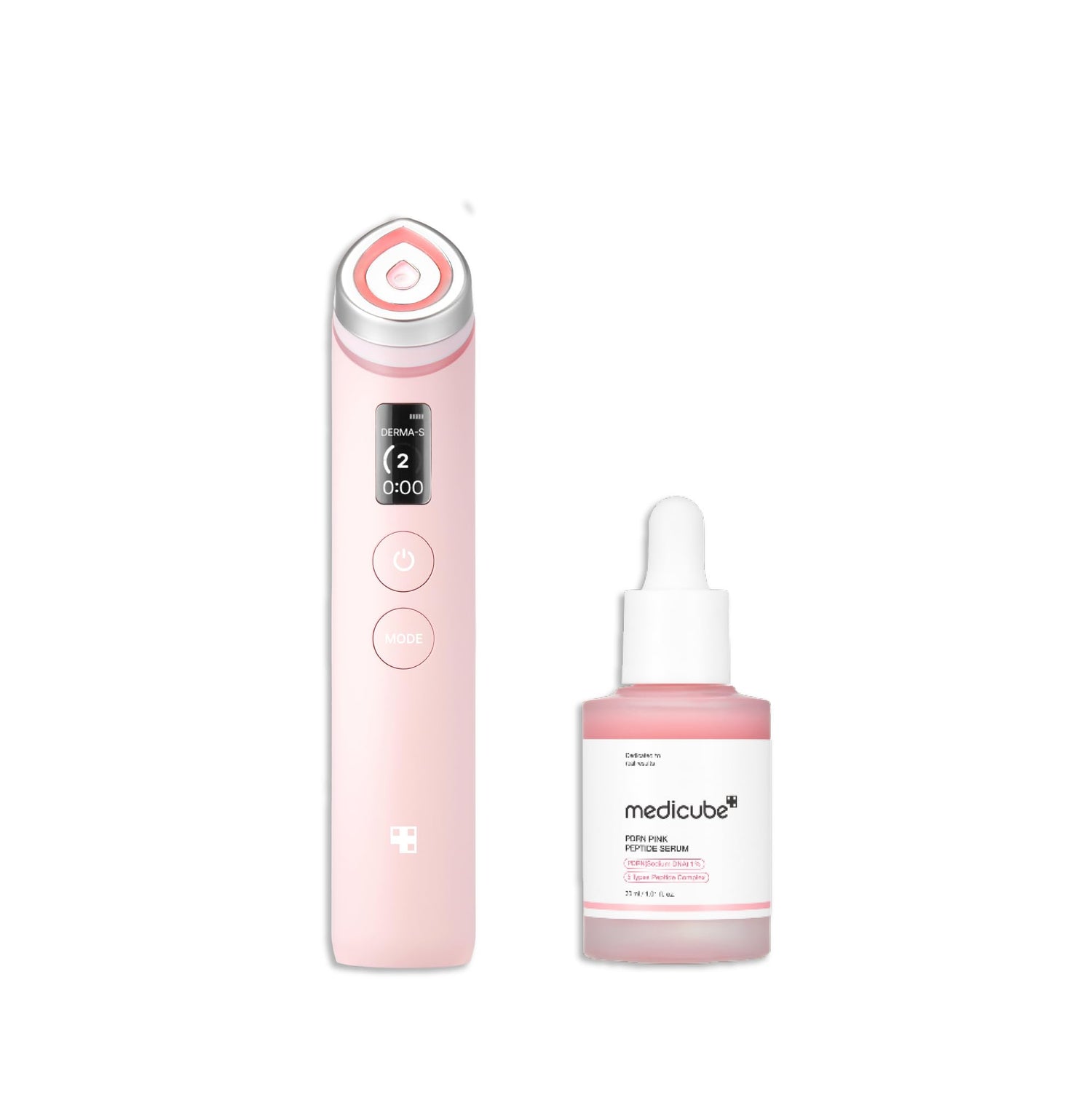 medicube Affordable Pink Routine Duo: Age-R Booster Pro Pink | 6-in-1 Real Glass Glow Beauty Massager and PDRN Peptide Serum