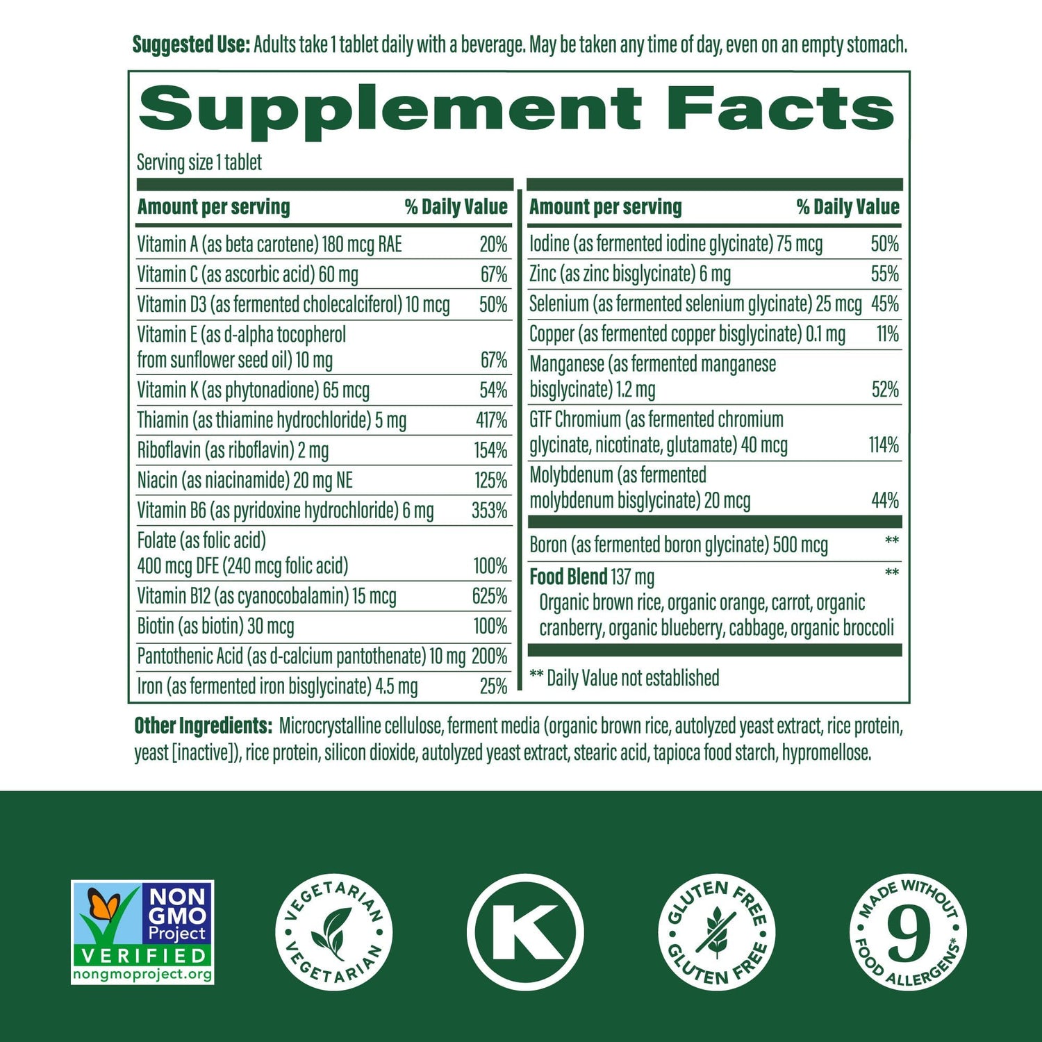 - Essential vitamins and minerals plus real food in one daily tablet to support the nutritional needs of adults and help fill gaps in the diet