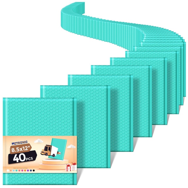 METRONIC Bubble Mailers 8.5 x 11 Inch 40 Pack Teal Waterproof Bubble Mailer Padded Envelopes Cushioning Poly for Christmas Gift, Clothes, Makeup, Books, Small Business Supplies