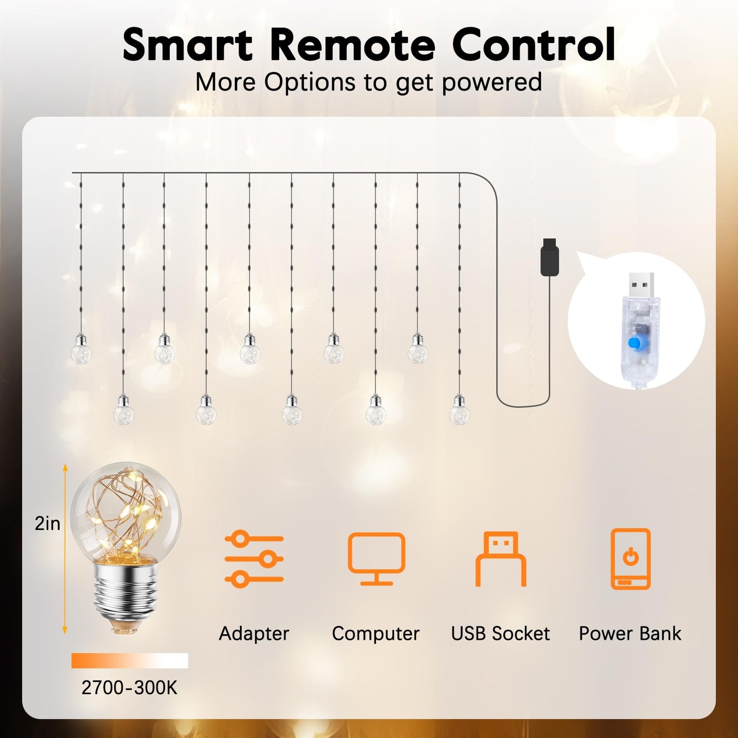 Minetom 200 LED Curtain Fairy Lights - 9.8 FT Wishing Ball Window Hanging Lights with Remote, USB Powered Waterproof for Christmas Wedding Bedroom Decoration, Warm White is backordered and will ship as soon as it is back in stock.