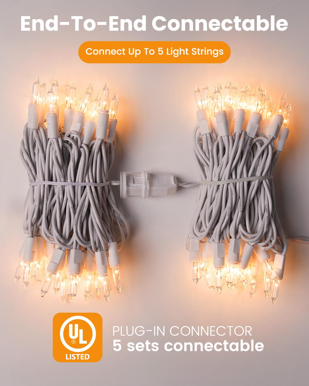 - Easy to Install: The Christmas light sets come with 2 spare fuse and 4 spare bulbs for easy replacement. This mini Christmas light can be connected end-to-end and can be extended to a longer connection length, making it be suitable for different decoration needs. It can be easily installed without additional tools