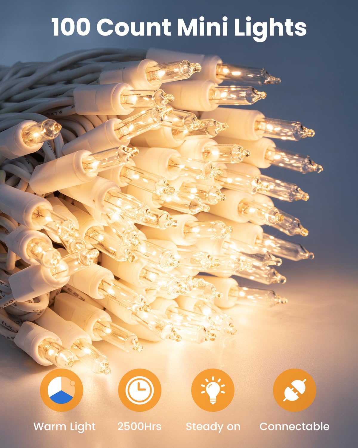 - Premium & Safe: The incandescent mini Christmas lights are made of high-quality material and superb craftsmanship, built-in fuses, universal UL-listed certification, can be used safely, perfect for Christmas tree, indoor, outdoor, and party decoration