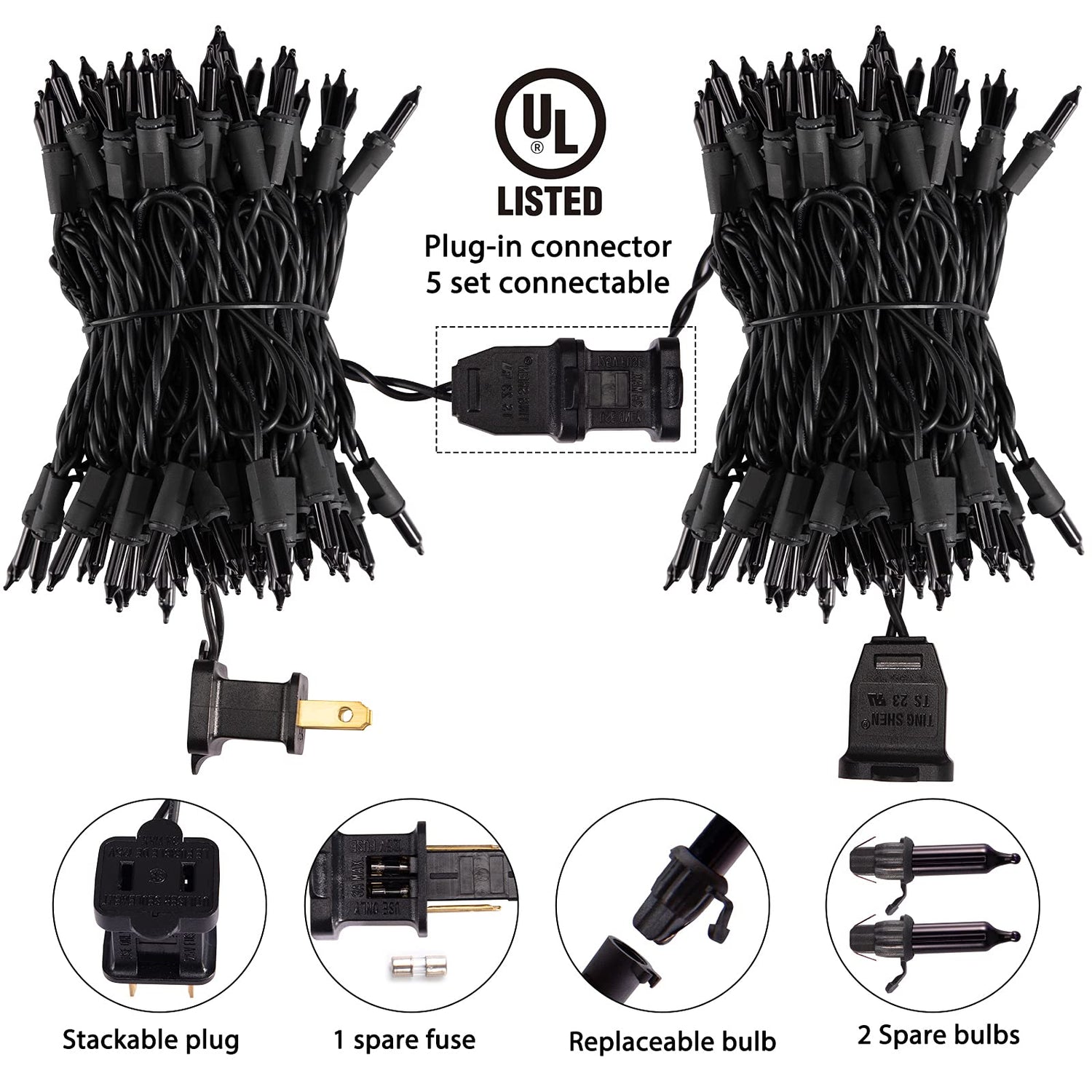 - End Extension: Up to 5 sets of same mini incandescent string lights connectable, which will make you get 125 feet 500 lights to customize your need for large area decorations, creating a grand view of haunting mood. 3 inches tail cord with key designed female connector for speedy connection