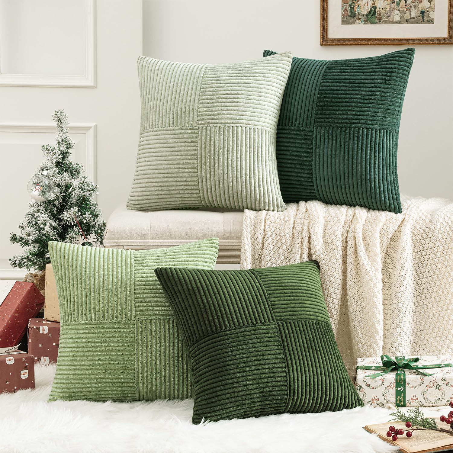 MIULEE Christmas Green Decorative Throw Pillow Covers 20x20 Inch Set of 4 Boho Farmhouse Cushion Covers Mordern Nordic Pillow Cases Soft Corduroy Gradient Home Decor for Couch Sofa Living Room Bed