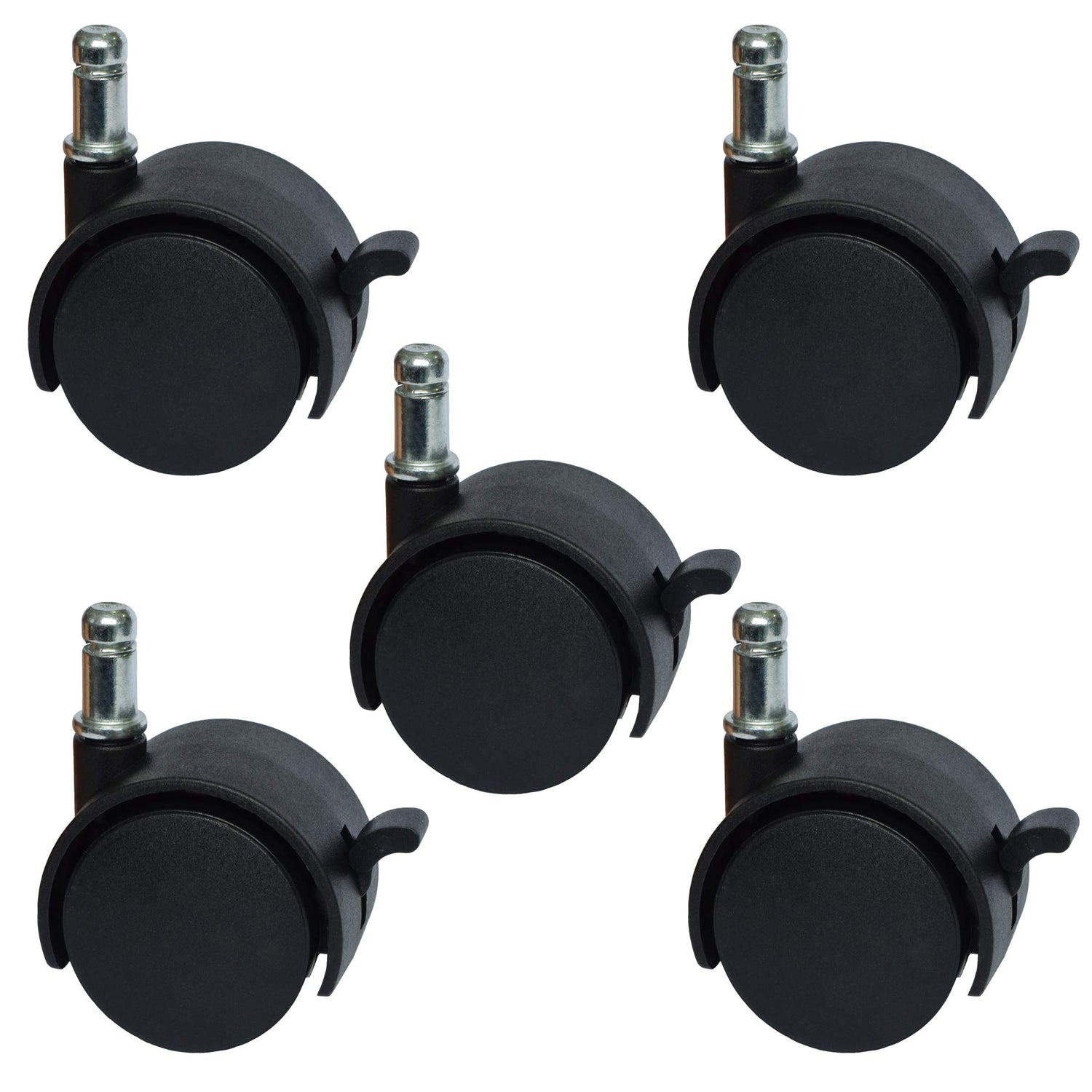 - Set of 5 Standard replacement 2" casters with double locking brake. Ideal for new or replacement use on chairs, stools, tables, and other furniture.