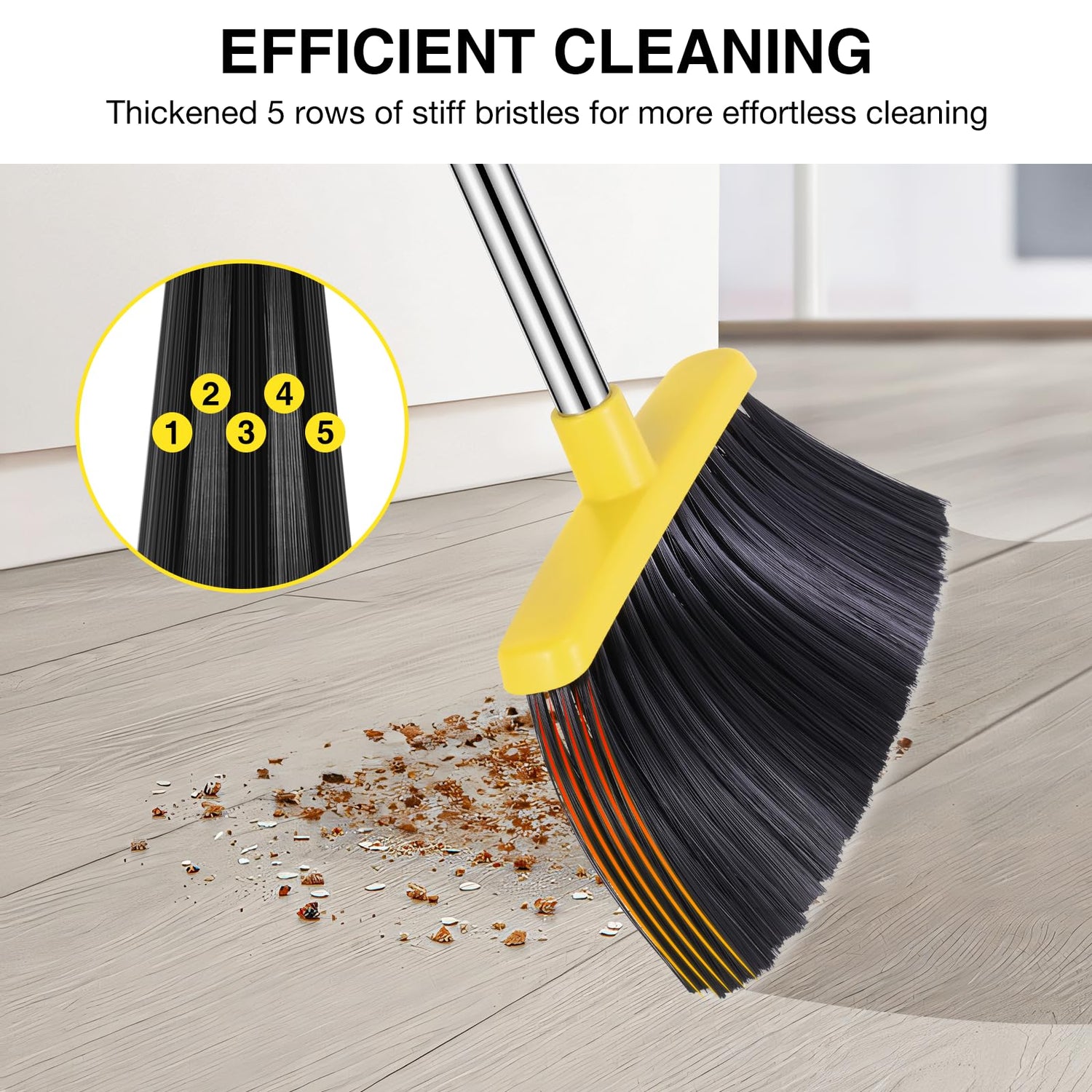 - LONG HANDLE BROOM AND DUSTPAN SET: Upgraded broom handle extends up to 52 inches, allowing you to stand up straight and sweep comfortably without bending over. Large-capacity dustpan holds a large amount of trash without leaking for efficient cleaning.